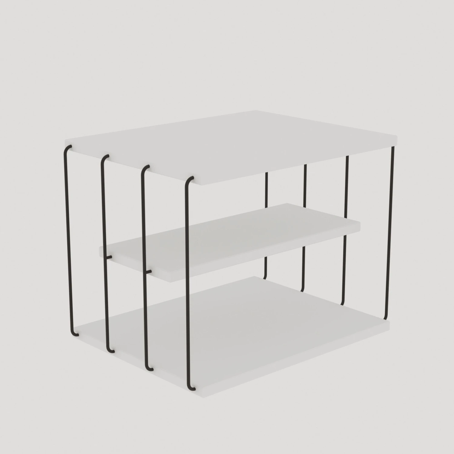 bijzettafel: 18 mm dik gemelamineerd spaanplaat met 100% metalen frame. Ontwerp met 2 niveaus, afmetingen: 50x40x34cm. Verkrijgbaar in wit en zwart