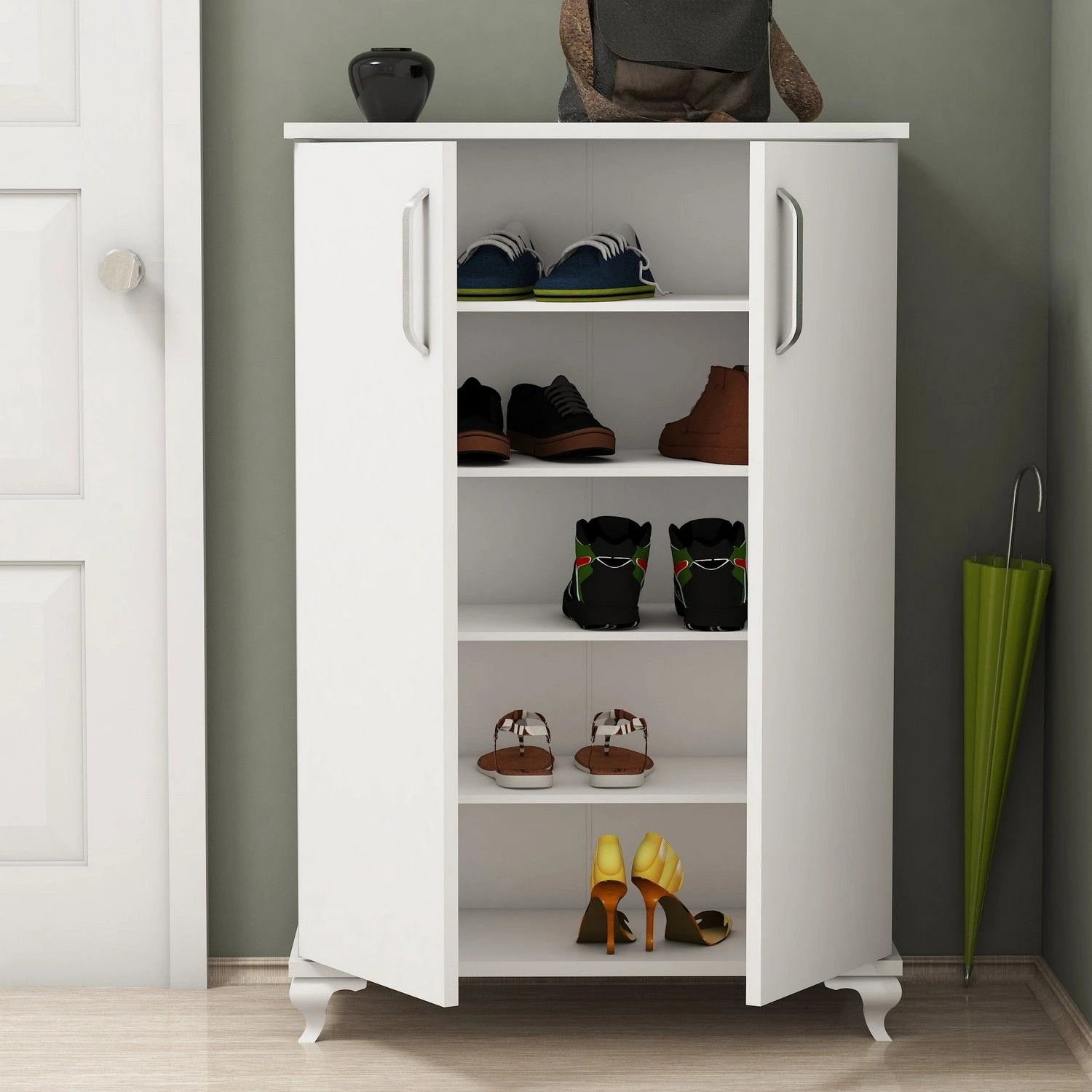 Almaren Schoenenkast is een stijlvolle opbergoplossing gemaakt van 100% gemelamineerd spaanplaat met een dikte van 18mm. Het heeft een breedte van 72cm, hoogte van 100cm, en diepte van 32cm, en wordt geleverd in een strakke witte kleur.