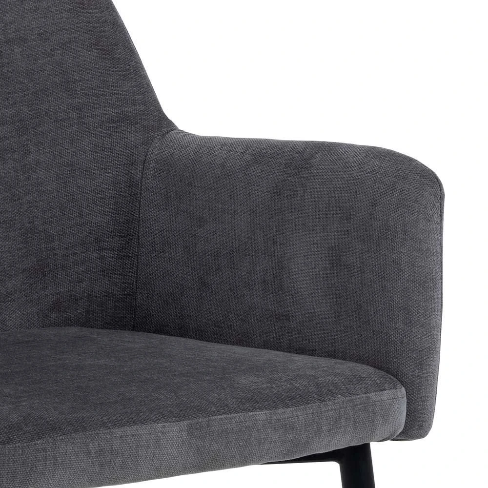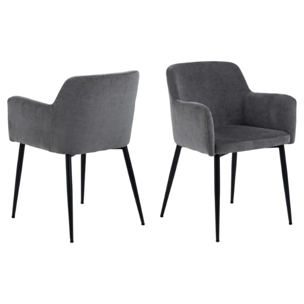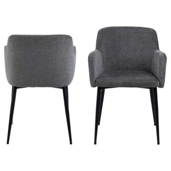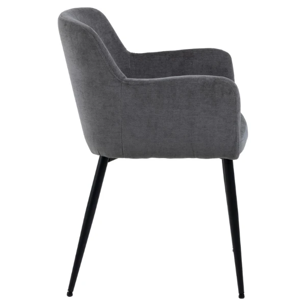 Armstoel Karen, met een donkergrijze stofbekleding en poten uit zwart gepoedercoat metaal. Set van 2.