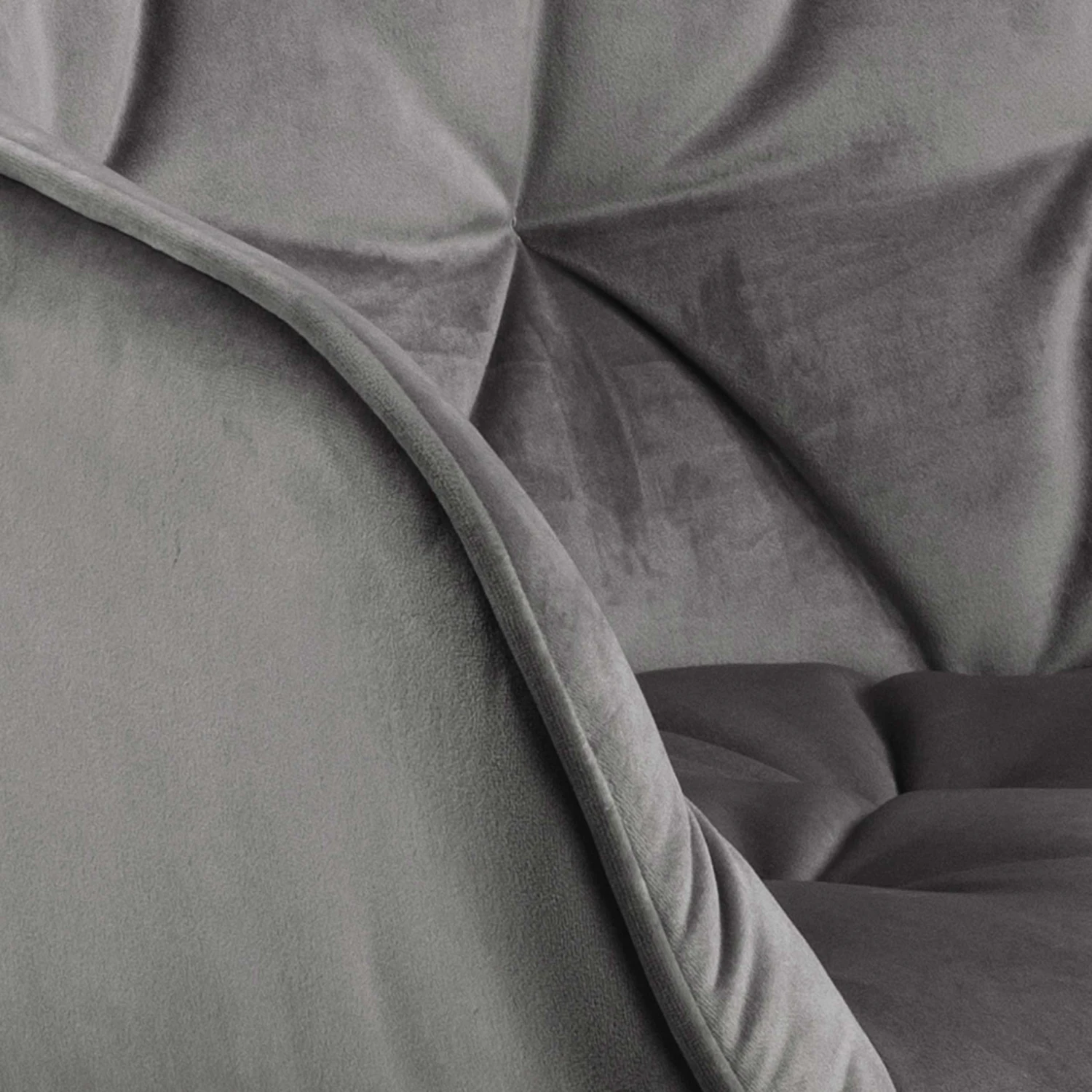 Stoel met armleuning Lynn met donkergrijze, fluwelen bekleding en zwarte poten.