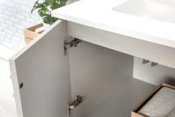 Jussara Badkamermeubelset: 2-delig, 100% Gelakt MDF, Aanrechtblad Wit Kwarts, Bronzen Handgrepen