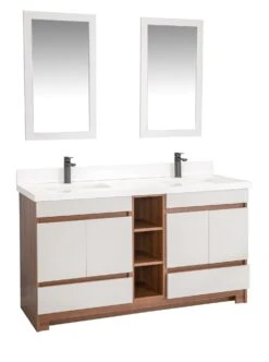 Jussara 2-delige Badkamermeubelset | Wit Gelakt MDF | Aanrechtblad Van Kwarts | Lade Van Marien Hout