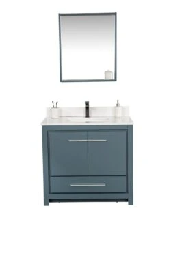 Jussara Badkamermeubelset | Blauw | 2st | LEKKER MDF | Kwarts Aanrechtblad | Lade Van Marien Hout