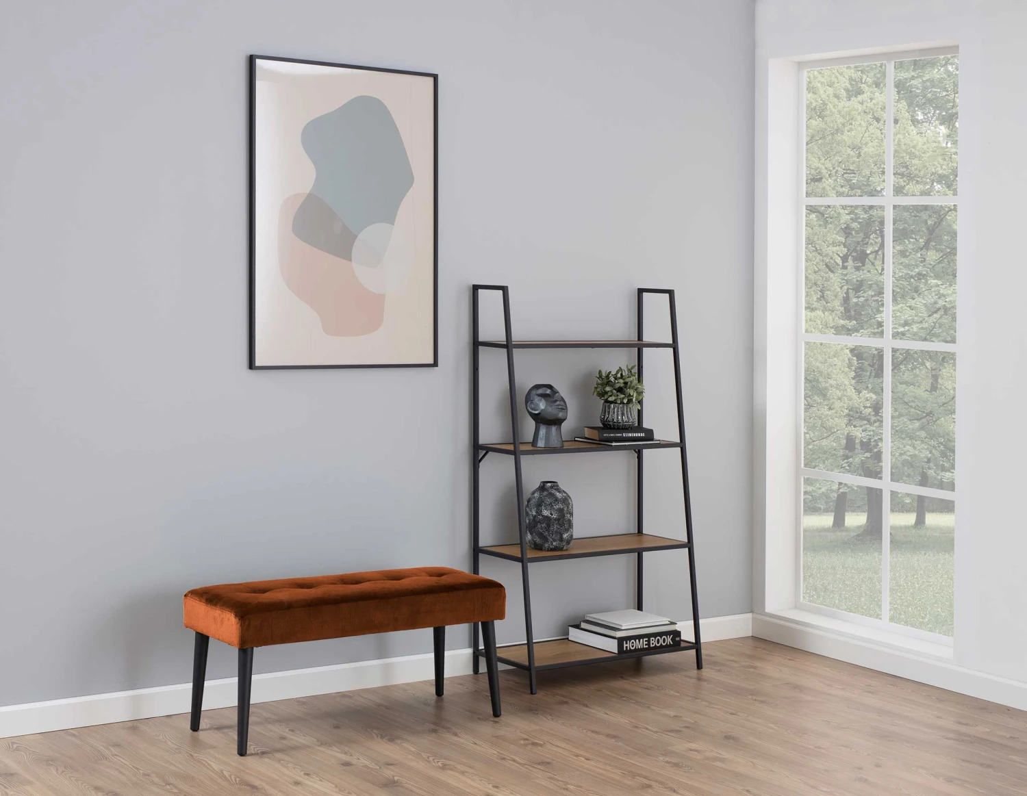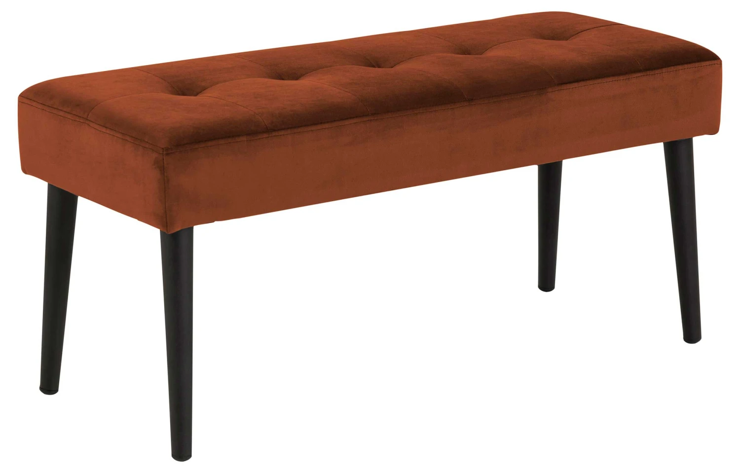 In de categorie ‘niet noodzakelijk, wél heel erg leuk’: dit mooie bankje van de Gloria-serie. Het bankje is 95 cm lang en past daardoor perfect als finishing touch in je woonkamer, hal of slaapkamer. De matzwarte poten zijn gemaakt van gepoedercoat metaal, de zitting is overtrokken met een koperkleurige stof.