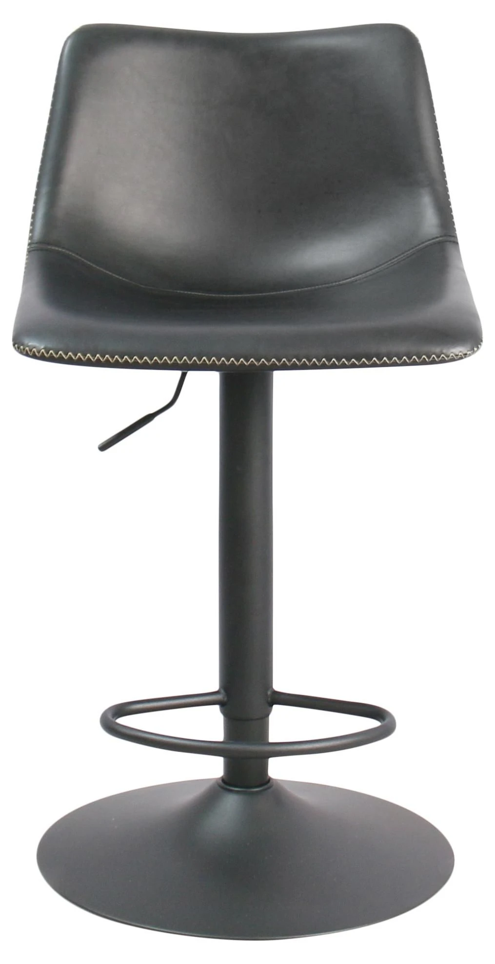 Barstoel Chico, gemaakt uit zwarte metaal met een zwart kunstlederen bekleding.