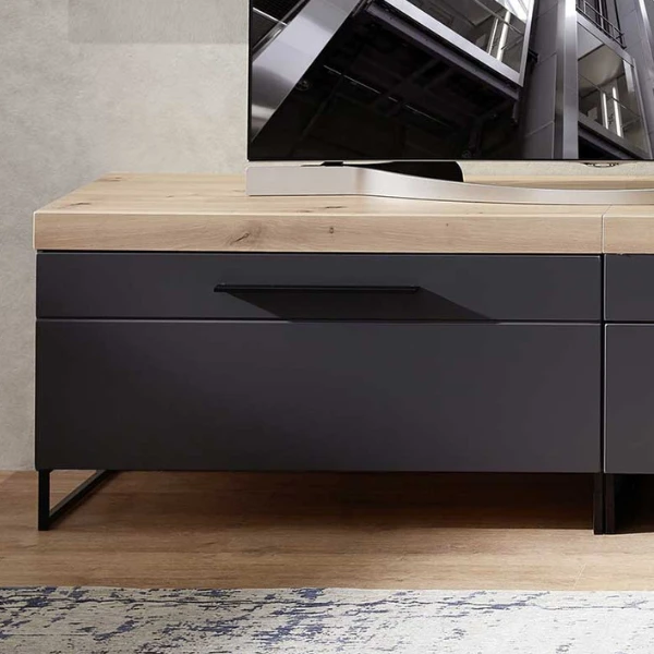 Bijzetkastje Lorna 96x44x55cm uit spaanplaat in mat antraciet. Met één opklapdeur.