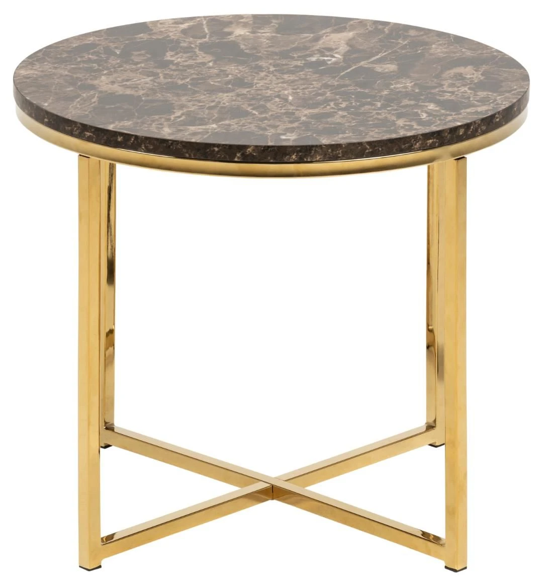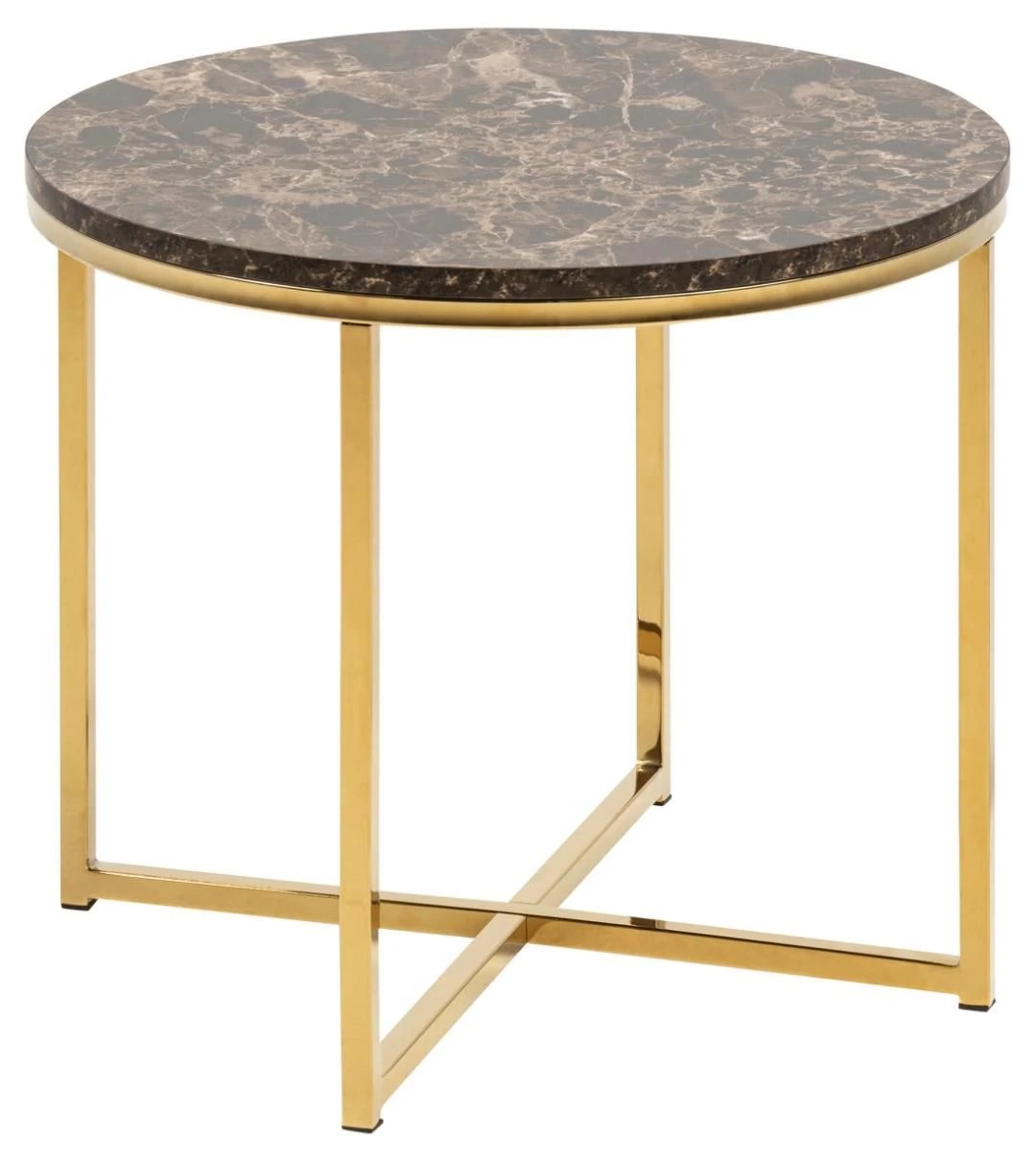 De Anika bijzettafel is ideaal om naast een bed of zetel te plaatsen. Deze bijzettafel is zeer praktisch en compact. Je kan gemakkelijk een lampje, kaars of plant op het tafelblad plaatsen. Deze bijzettafel is gemaakt uit kunstmarmer in het bruin met gouden poten.