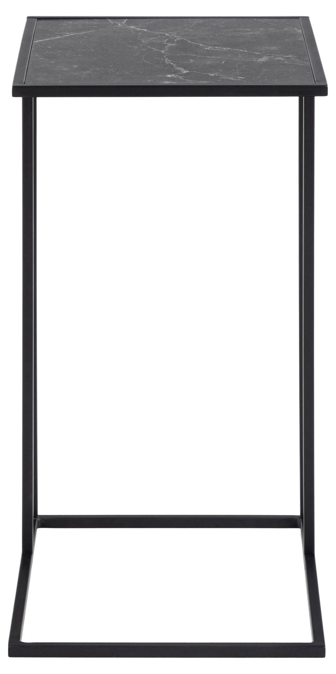 Bijzettafel Infinity (43×35 cm) met tafelblad in marmerlook en zwart gepoedercoat metalen onderstel.