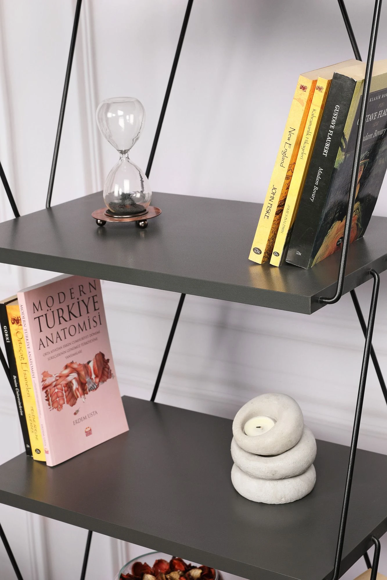 De antracietkleur van de boekenplank voegt een vleugje elegantie en verfijning toe aan elke kamer. De diepe, donkere tint past naadloos bij elke interieurstijl, of het nu modern, eigentijds of traditioneel is. Verhoog de esthetische aantrekkingskracht van je woonkamer, slaapkamer of thuiskantoor met deze slanke en veelzijdige boekenplank.