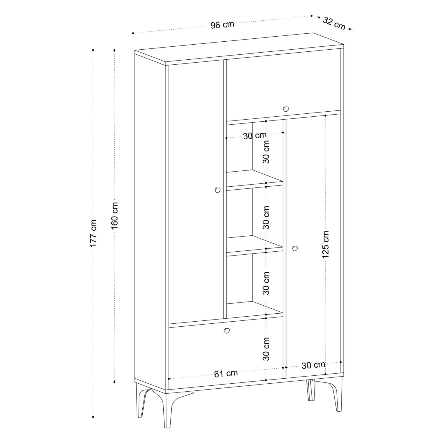 Boekenplank Emerald is een stijlvolle en duurzame opbergoplossing gemaakt van 100% gemelamineerd spaanplaat. Met een slanke afwerking in Sapphire Oak Black biedt het royale ruimte en staat het hoog met 96 cm breed, 177 cm hoog en 32 cm diep, ondersteund door 17 cm poten.