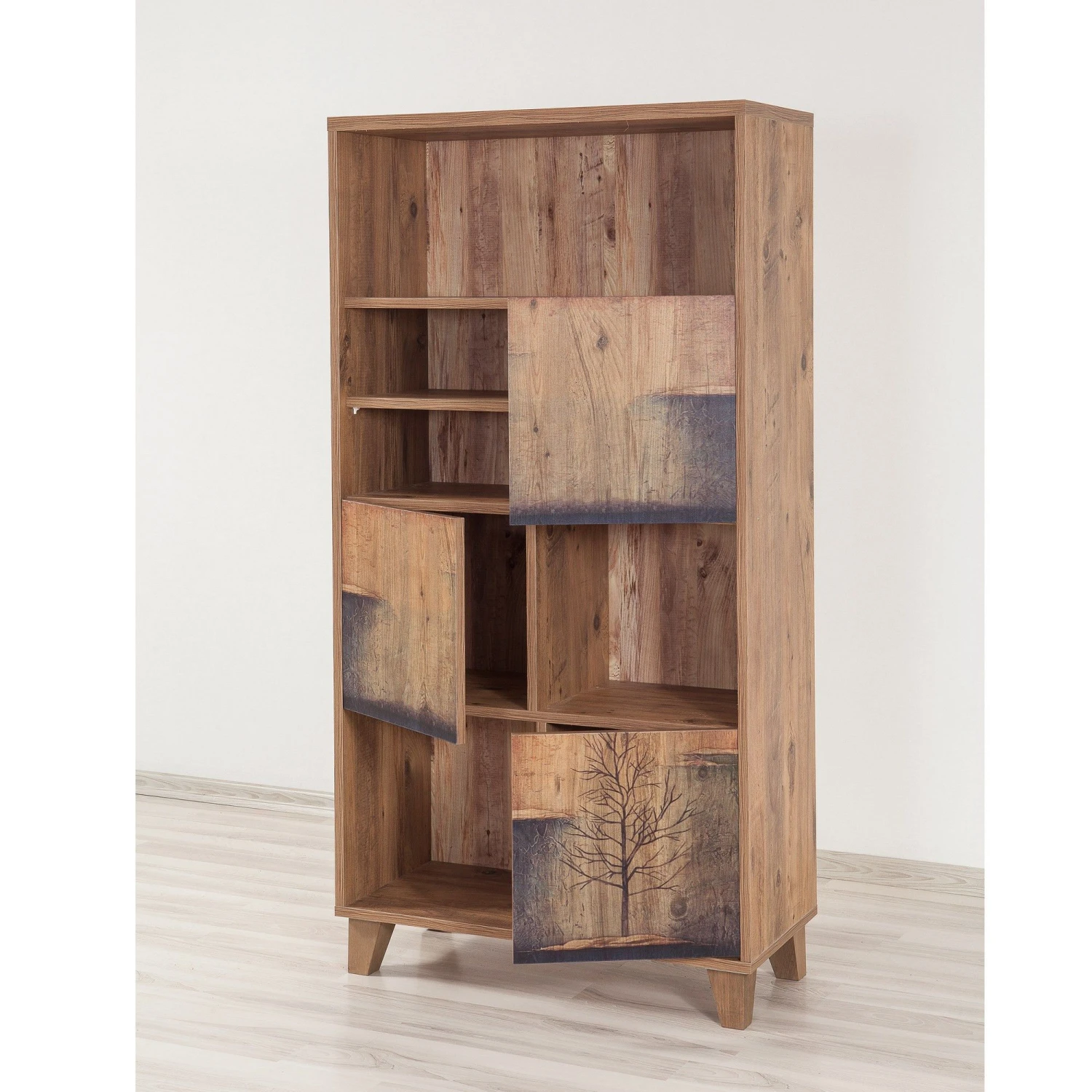 Saffier boekenplank: 100% gemelamineerd spaanplaat, houten poten, UV-coating, 80x155x36 cm groot, talrijke planken, kan aan de muur worden bevestigd, Atlantic Pine kleur