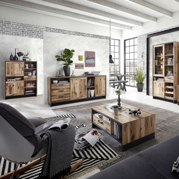 De combinatie van de houtlook en de zwarte metalen details geeft de collectie Delano een robuuste en warme uitstraling die perfect past in een industrieel interieur. Deze buffetkast is gemaakt uit spaanplaat met metalen handgrepen. Achter de twee deuren zijn twee legplanken voorzien waardoor je allerlei spullen netjes kan opbergen. In de lade heb je plaats voor kleinere items. Daarnaast heeft de kast vijf open opbergvakken waar je jouw boeken of decoratie kan uitstallen. Ontdek ook de overige producten uit de collectie Delano.