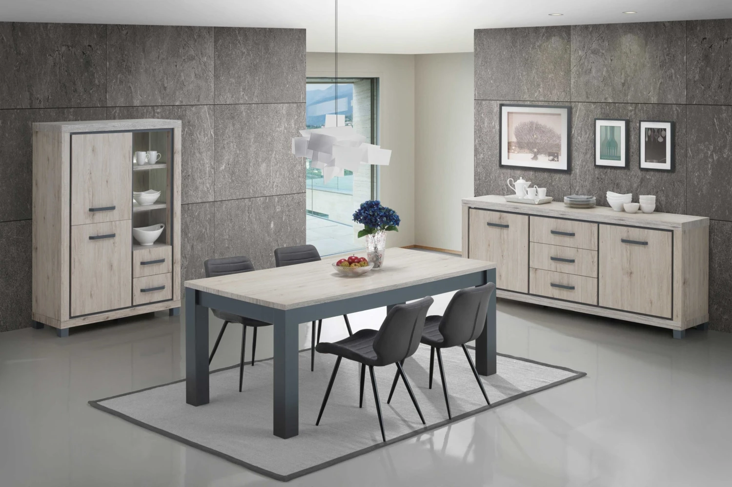 Deze Dirk buffetkast biedt heel wat opbergruimte en tegelijk de mogelijkheid om een fotokader of andere decoratie uit te stallen. De kast kan ook verlicht worden. De barkast is gemaakt uit spaanplaat met een natuurlijk eikdecor en donkere details. Neem ook eens een kijkje naar de vitrinekast uit deze collectie.