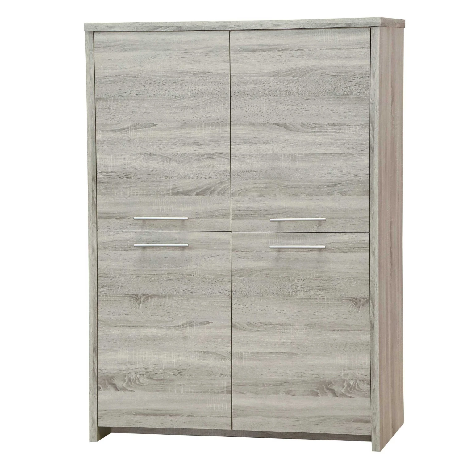 Deze moderne buffetkast is gemaakt uit spaanplaat met een sonoma eikdecor (grijs). De kast telt vier draaideuren en zes legplanken. Met deze barkast creëer je dus heel wat opbergruimte in de woonkamer! Ontdek de overige meubelen van de Loft collectie online in onze shop!