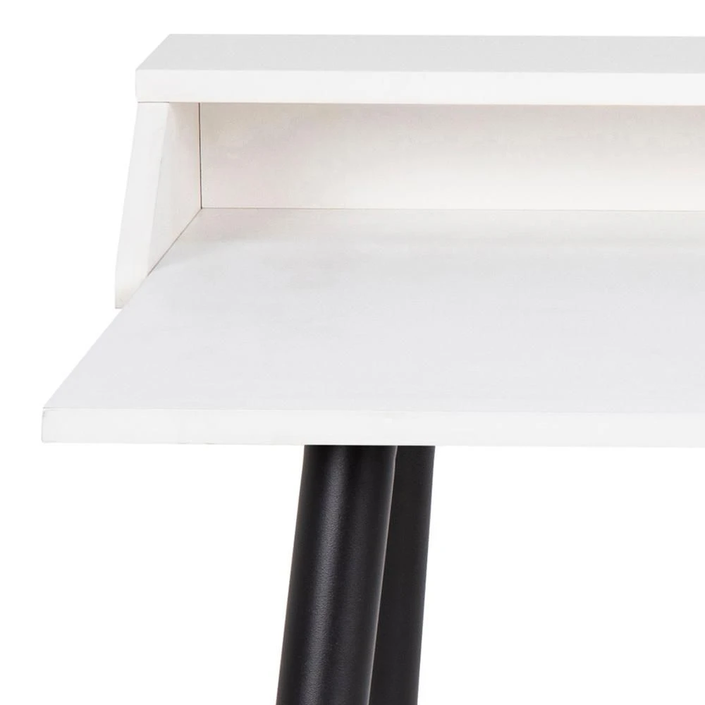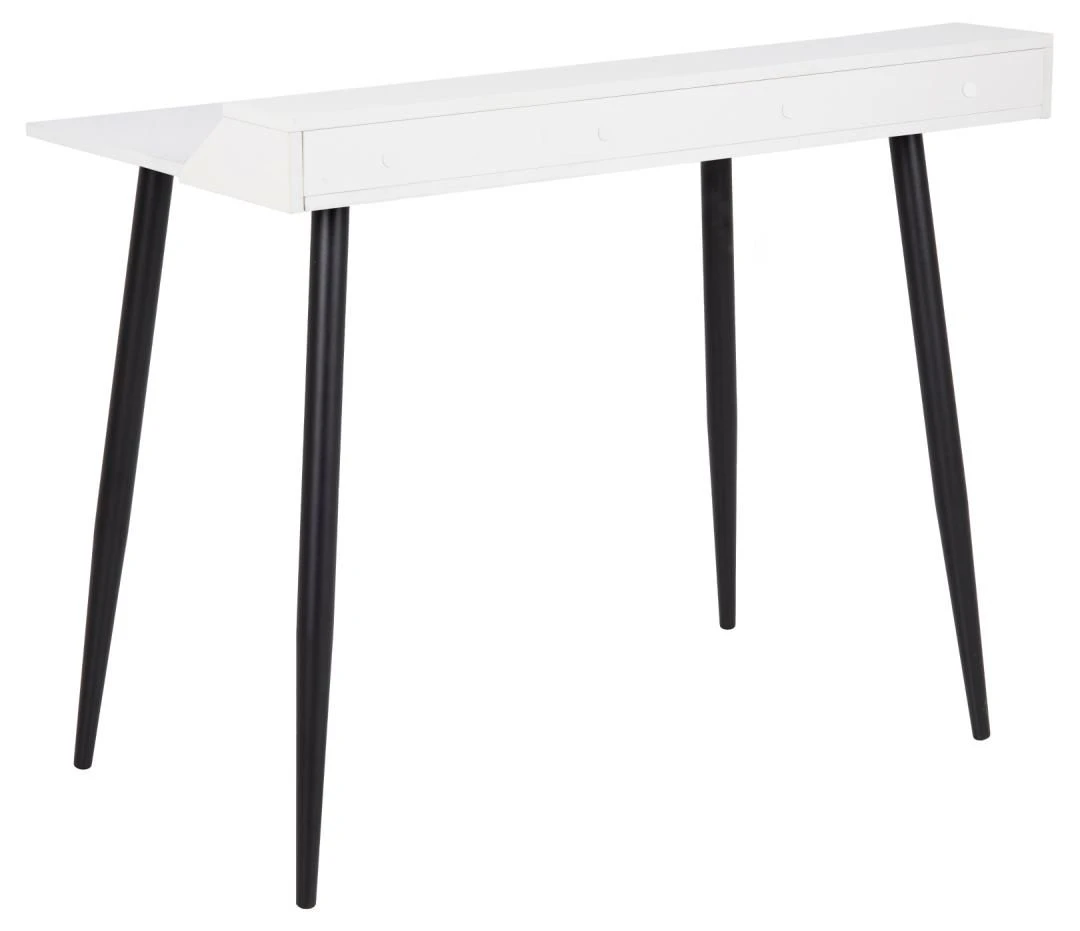Bureau Jordan met open gedeelte, in witte melamine en mat zwarte metalen poten met poedercoating.