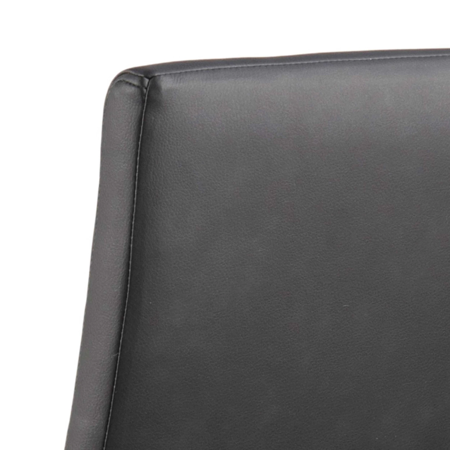 De voet is gemaakt van zwart polypropyleen, het zitting en rugleuning zijn overtrokken met kunstleder en zijn voorzien van horizontale stiknaden.