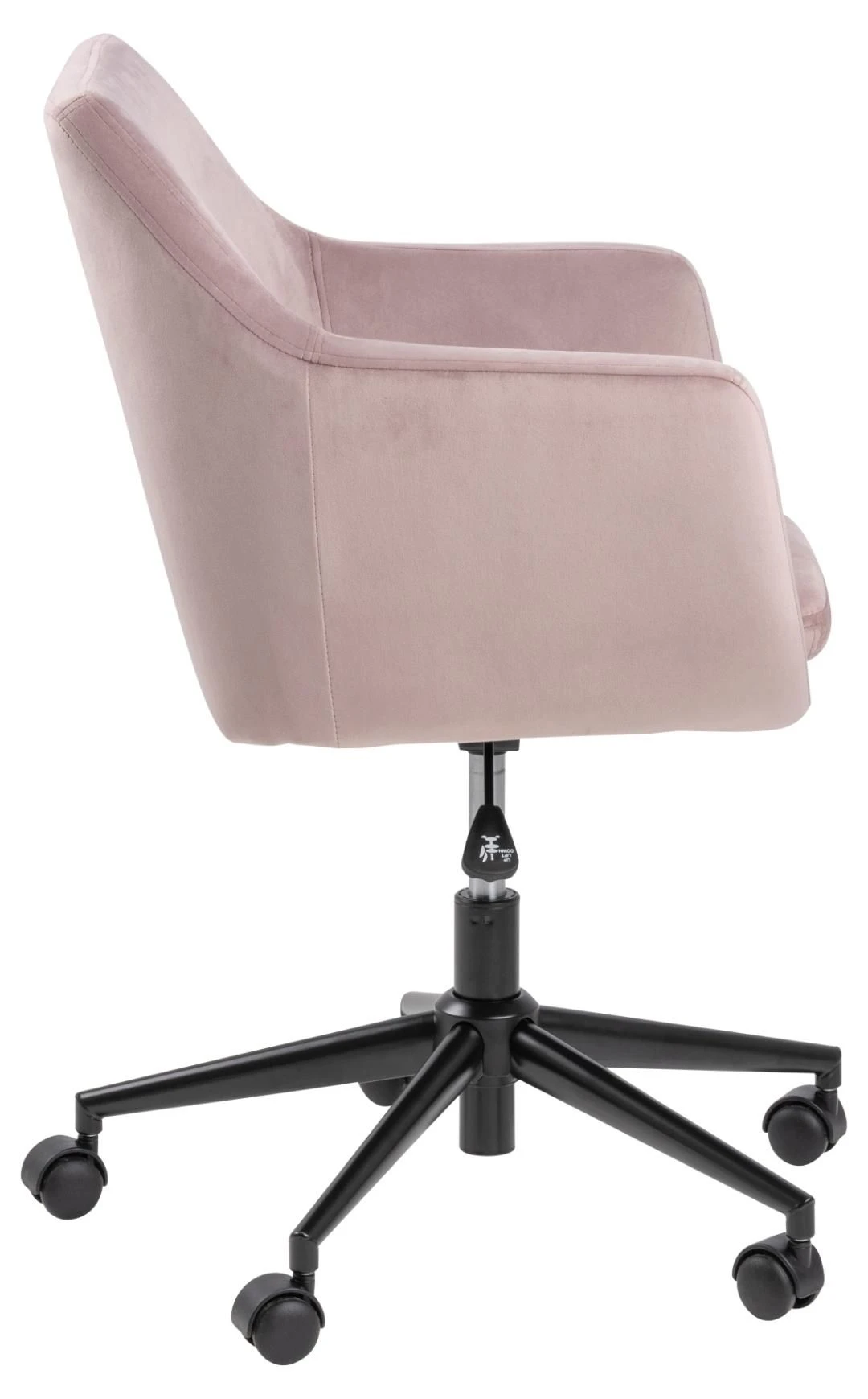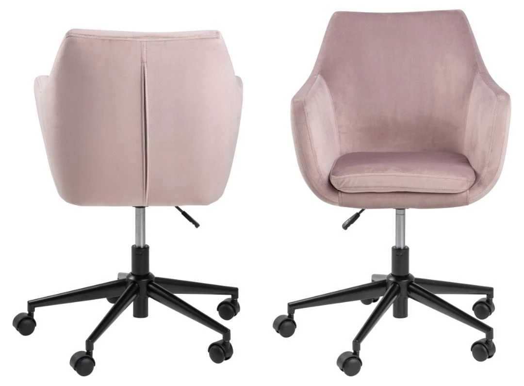 De Noria bureaustoel is gemaakt uit metaal, met een bekleding in lichtroze VIC stof. Bedraagt een zithoogte van 44 cm tot 54 cm, een zitbreedte van 39 cm en een zitdiepte van 41 cm.