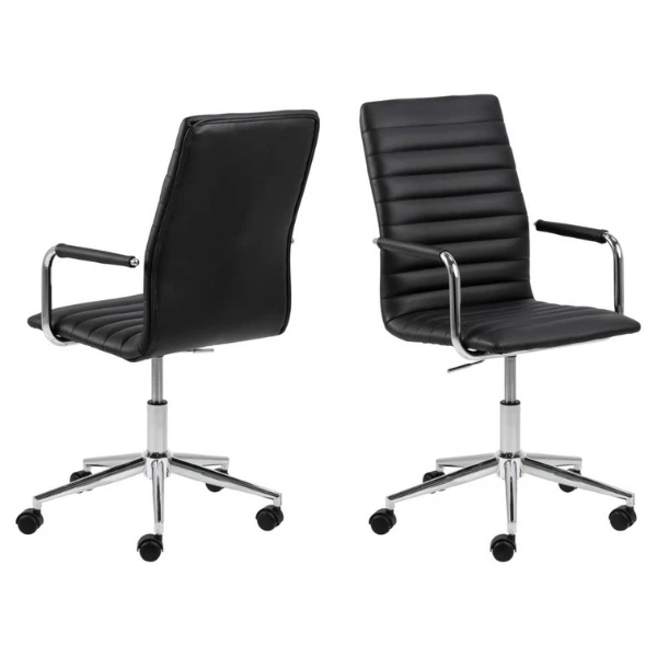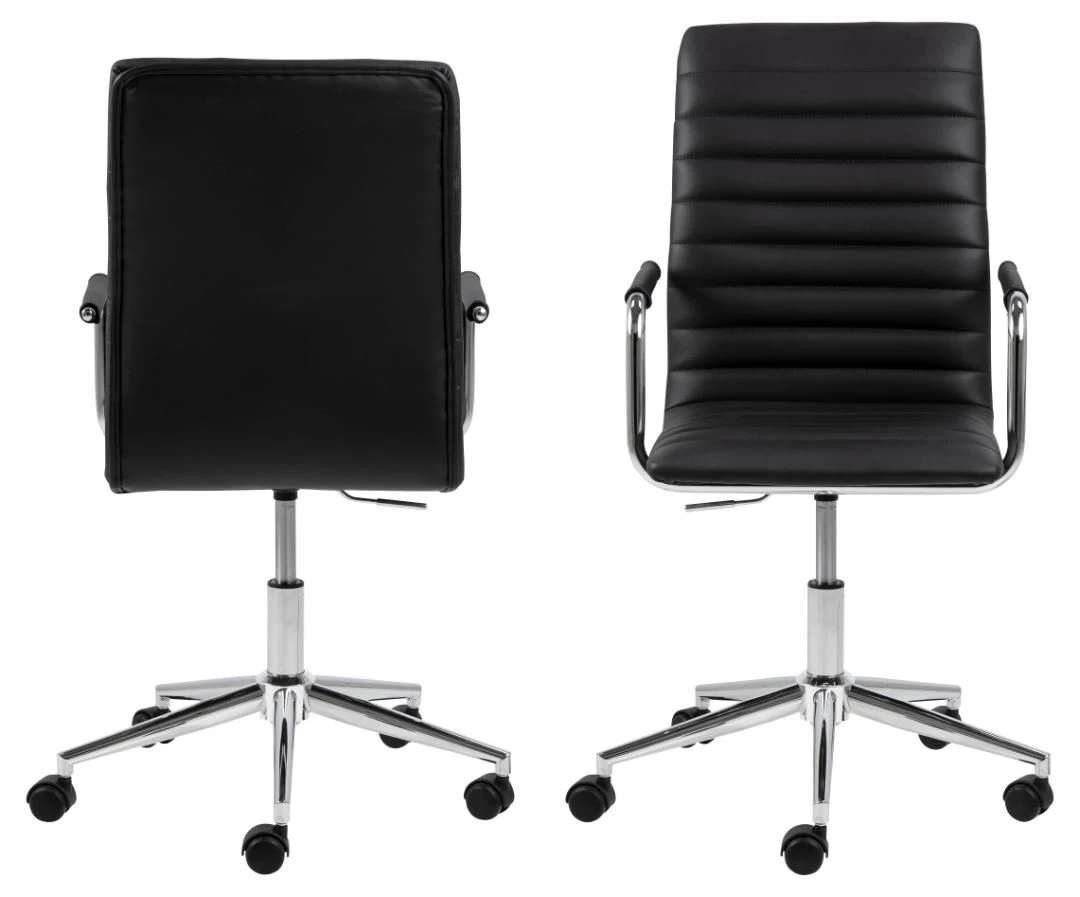 Bureaustoel Windsor, gemaakt uit PU in een zwarte lederlook. Frame gemaakt uit metaal.