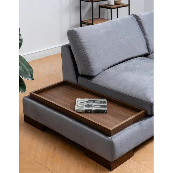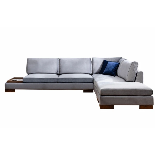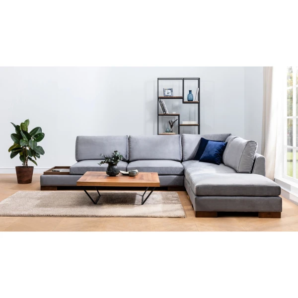 Voeg een vleugje stijl en comfort toe aan je woonkamer met onze hoekbank. Dit prachtige meubelstuk is ontworpen om de ster van je ruimte te zijn en biedt zowel comfort als een uniek ontwerp dat indruk zal maken op je gasten. Of je nu een feestje geeft of gewoon ontspant na een lange dag, deze hoekbank is de perfecte toevoeging aan je huis.Een van de belangrijkste kenmerken van onze hoekbank is de hoogwaardige constructie. Het frame is gemaakt van duurzaam beukenhout en spaanplaat, zodat hij jarenlang bestand is tegen dagelijks gebruik. De stof is 100% polyester, waardoor hij zacht en luxueus aanvoelt. Met een lengte van 313 cm en een breedte van 193 cm biedt deze hoekbank voldoende zitruimte voor jou en je gasten. De hoogte van 80 cm zorgt ervoor dat je comfortabel kunt zitten en ontspannen zonder een benauwd gevoel te krijgen. Het schuim dat in de bank wordt gebruikt is van de hoogste kwaliteit, met een dichtheid van 28 DNS voor het zachte grijze schuim dat wordt gebruikt voor het zitten, en 24 DNS veren voor extra comfort. De rugkussens zijn gemaakt van een combinatie van 60% snipperschuim en 40% siliconenschuim, voor optimale ondersteuning met behoud van een pluche gevoel.We begrijpen het belang van maatwerk, daarom hebben we 2 kussens bij de bank geleverd. Deze kussens zijn gemaakt van hetzelfde hoogwaardige schuim als de rugkussens en bieden extra comfort en ondersteuning. De kussens zelf zijn gemaakt van een combinatie van 60% snipperschuim en 40% siliconenschuim. Als je de voorkeur geeft aan een andere vorm of maat, kan het draagbare zit-/rugkussen eenvoudig worden herschikt om aan je voorkeuren te voldoen.De poten van de Hoekbank zijn gemaakt van walnoothout, wat een vleugje elegantie toevoegt aan het algehele ontwerp. Deze poten zijn stevig en betrouwbaar, zodat je bank stabiel blijft tijdens het gebruik. Let op: de poef is niet inbegrepen bij de bank, zodat je de flexibiliteit hebt om desgewenst voor extra zitopties te kiezen.Qua kleur is de Corner Sofa verkrijgbaar in een rijke en verfijnde donkergrijze kleur. Deze kleur is tijdloos en veelzijdig, waardoor hij gemakkelijk te combineren is met een bestaande inrichting of een opvallende verschijning is in je woonkamer.Over het geheel genomen biedt de Corner Sofa een winnende combinatie van stijl, comfort en duurzaamheid. De hoogwaardige constructie en aandacht voor detail onderscheiden hem van andere banken op de markt. Als je je woonkamer een update wilt geven