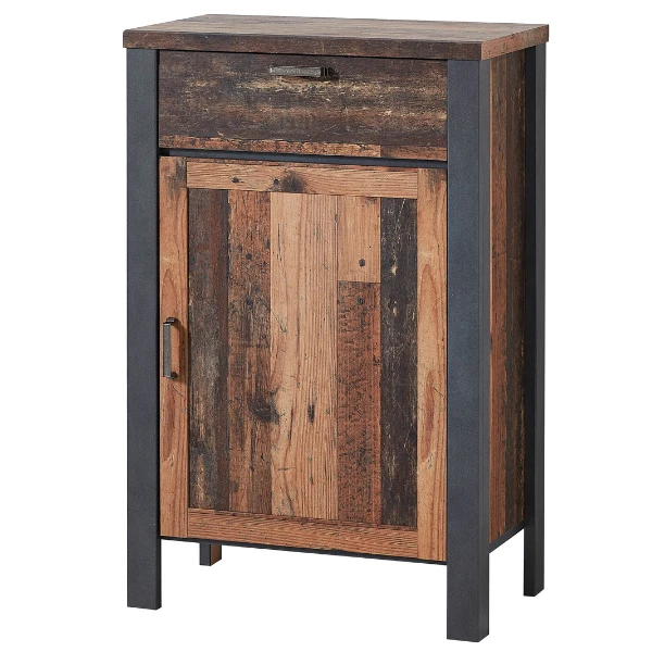 Commode Carthago 69cm Met 1 Deur & 1 Lade – Oude Eik/antraciet