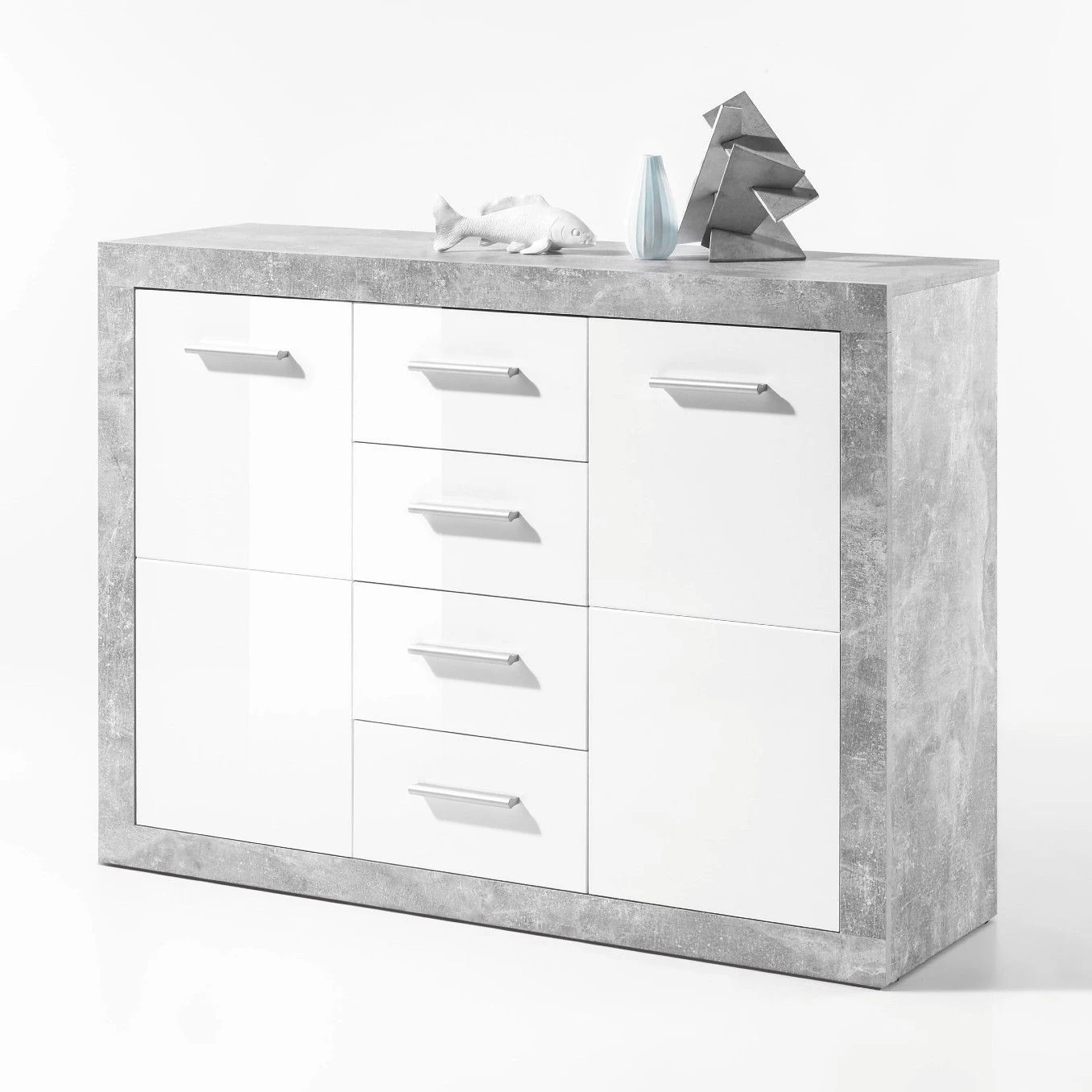 Commode Inga 117 Cm Met 2 Deuren & 4 Lades – Beton/wit
