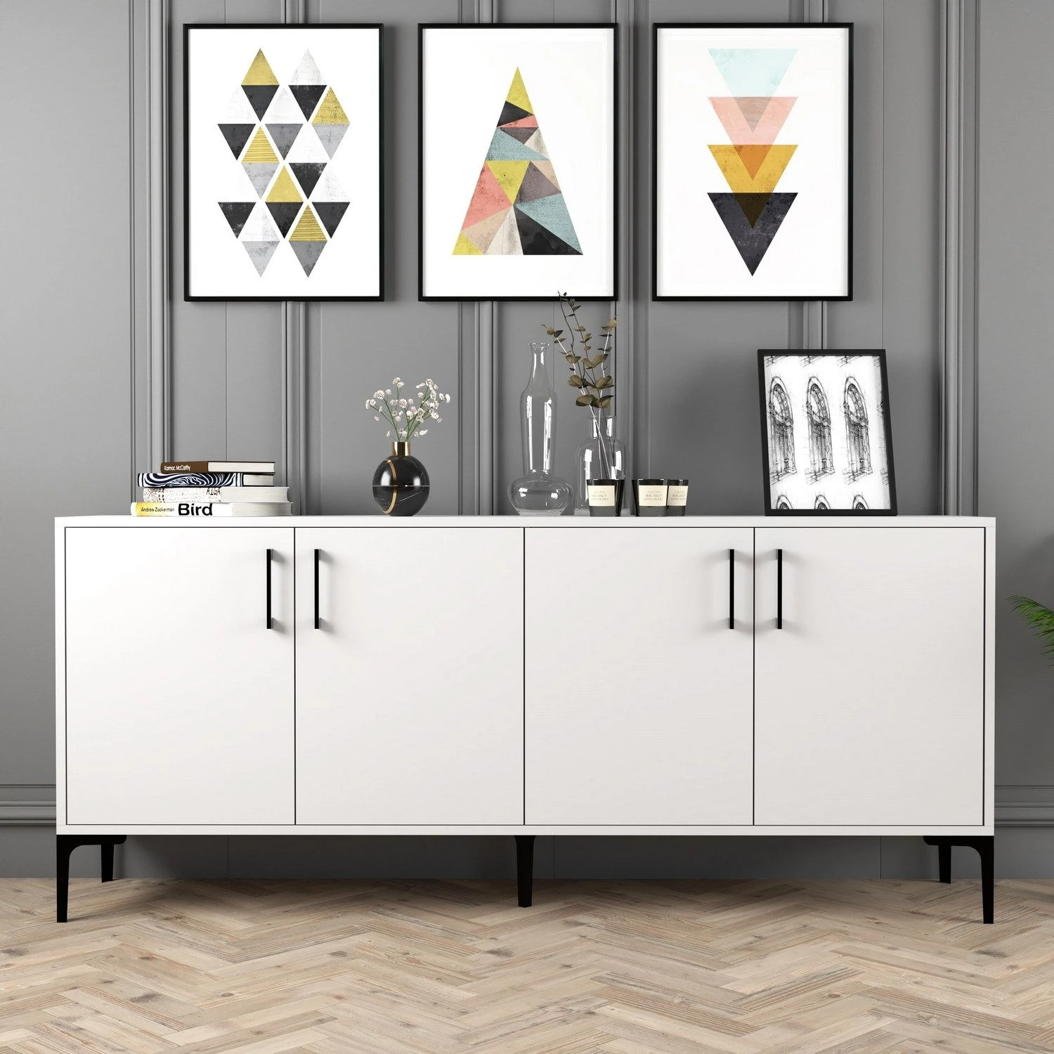 De metalen poot van de Woody Fashion console voegt een vleugje elegantie en moderniteit toe aan het algehele ontwerp. Het strakke en eigentijdse uiterlijk past moeiteloos bij elke interieurstijl. De witte kleur van de metalen poot versterkt de esthetische aantrekkingskracht van de console nog meer, waardoor een visueel aantrekkelijk meubel ontstaat dat moeiteloos in elke kamer past.
