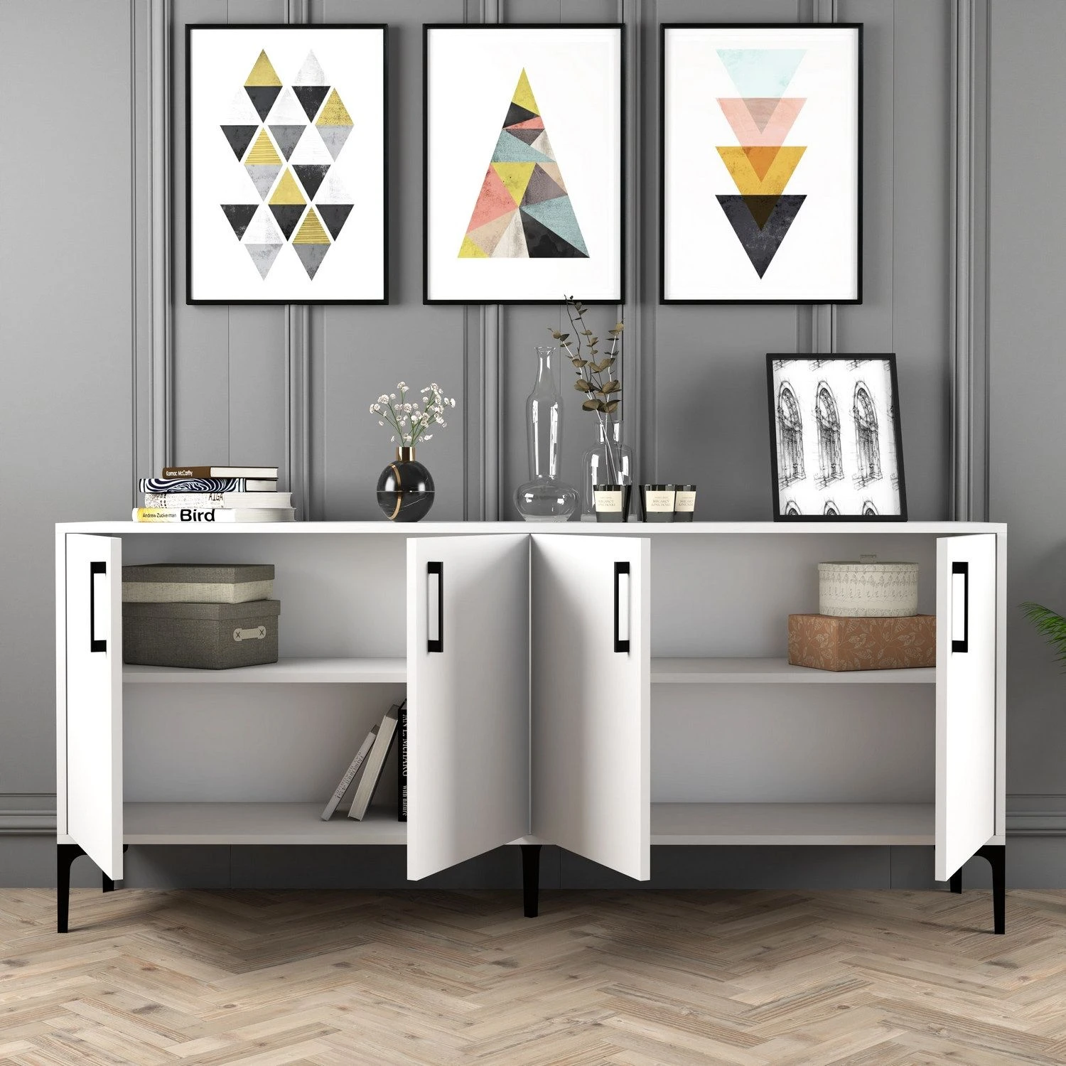 Naast de sterke en stijlvolle constructie biedt de Woody Fashion console een aantal voordelen. Het ruime oppervlak biedt voldoende ruimte voor het uitstallen van uw dierbare bezittingen, waardoor het ideaal is voor het tonen van familiefoto’s, vazen of kunstwerken. De meerdere planken en laden van de console bieden veelzijdige opbergmogelijkheden, zodat u uw ruimte georganiseerd en vrij van rommel kunt houden.