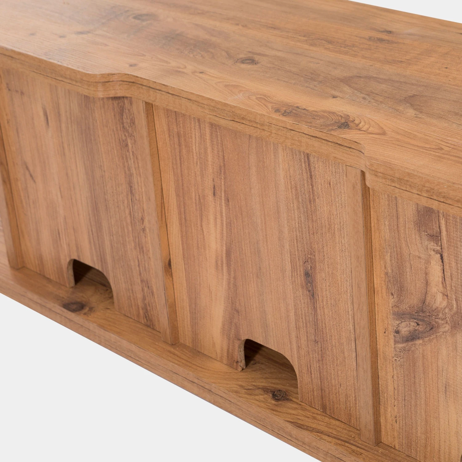 Met poten en kolommen gemaakt van 100% haagbeuk voegt dit TV-meubel een vleugje elegantie toe aan elke woonruimte. Haagbeuk staat bekend om zijn sterkte en duurzaamheid, waardoor het de perfecte keuze is voor het ondersteunen van je entertainmentsysteem. De combinatie van gemelamineerd spaanplaat en poten en kolommen van haagbeuk zorgt ervoor dat dit TV-meubel er niet alleen geweldig uitziet, maar ook bestand is tegen dagelijks gebruik.