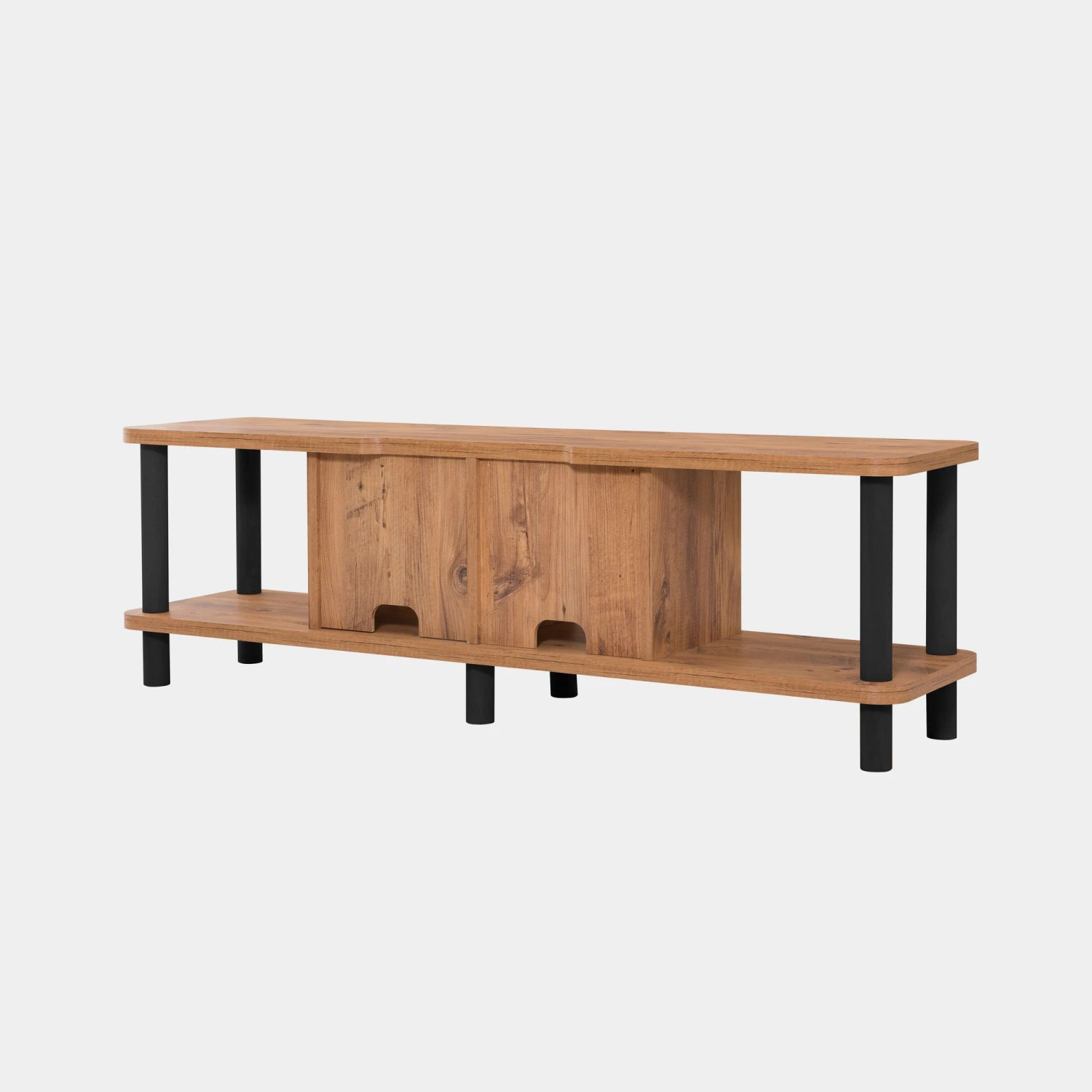 Het Dora TV-meubel is ontworpen in een strakke en moderne stijl, waarbij de zwarte Atlantic pine kleur een vleugje verfijning toevoegt aan je interieur. Of je nu een hedendaags of traditioneel interieur hebt, dit TV-meubel past naadloos in elke ontwerpesthetiek en verbetert de algemene look van je woonkamer of entertainmentruimte.