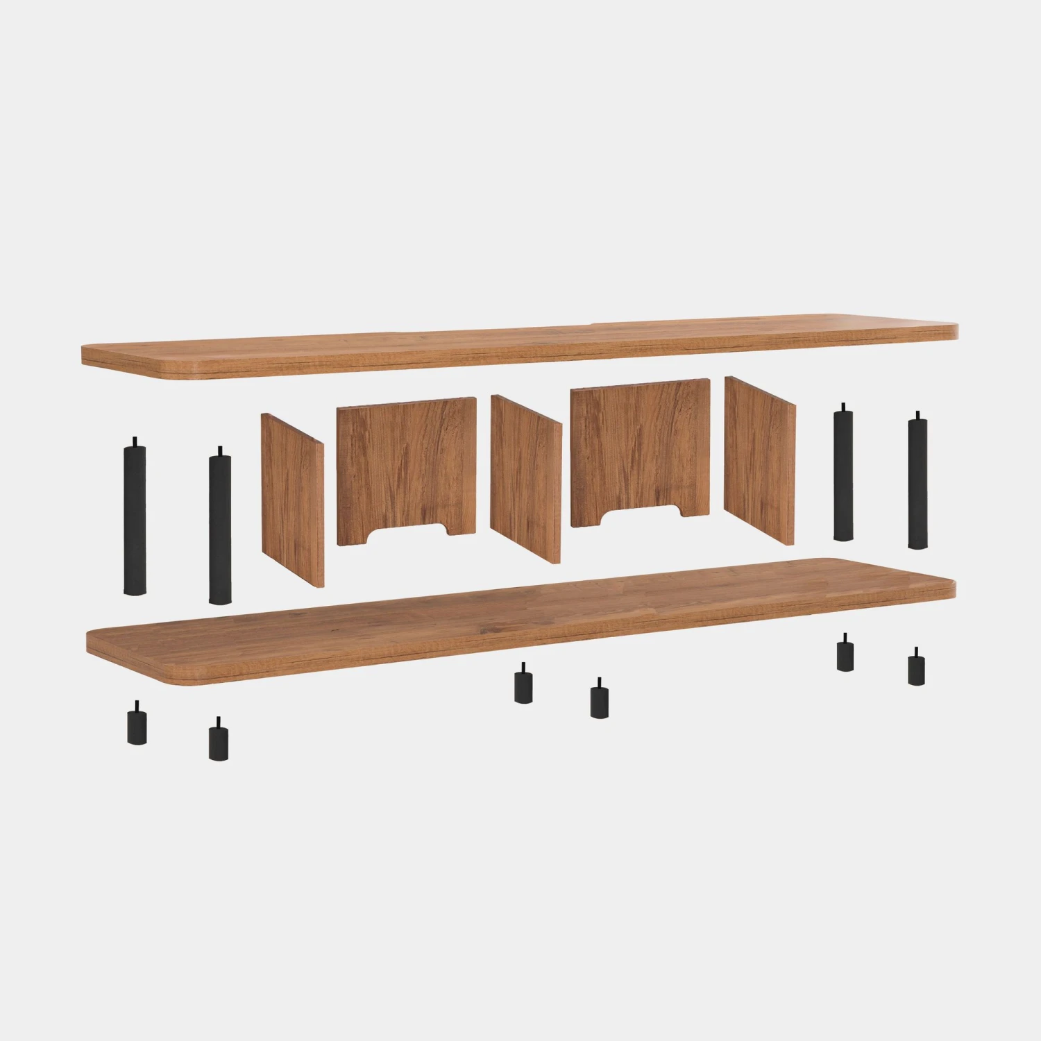 Met een breedte van 140 cm en een hoogte van 43 cm biedt de Dora TV Stand voldoende ruimte voor je televisie en andere media-apparaten. Het ruime bovenblad is geschikt voor grote flatscreentelevisies en biedt een veilige plek voor je entertainmentcentrum. Daarnaast heeft het open planken die perfect zijn voor het opbergen van spelconsoles, kabeldozen of andere media-apparaten, waardoor je woonkamer opgeruimd en georganiseerd blijft.