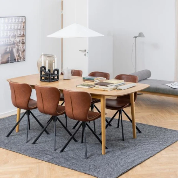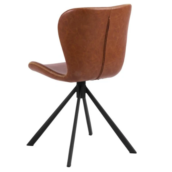Draaibare eetkamerstoel Tilda met zwart onderstel in gepoederlakt staal en bruine bekleding in kunstleer.