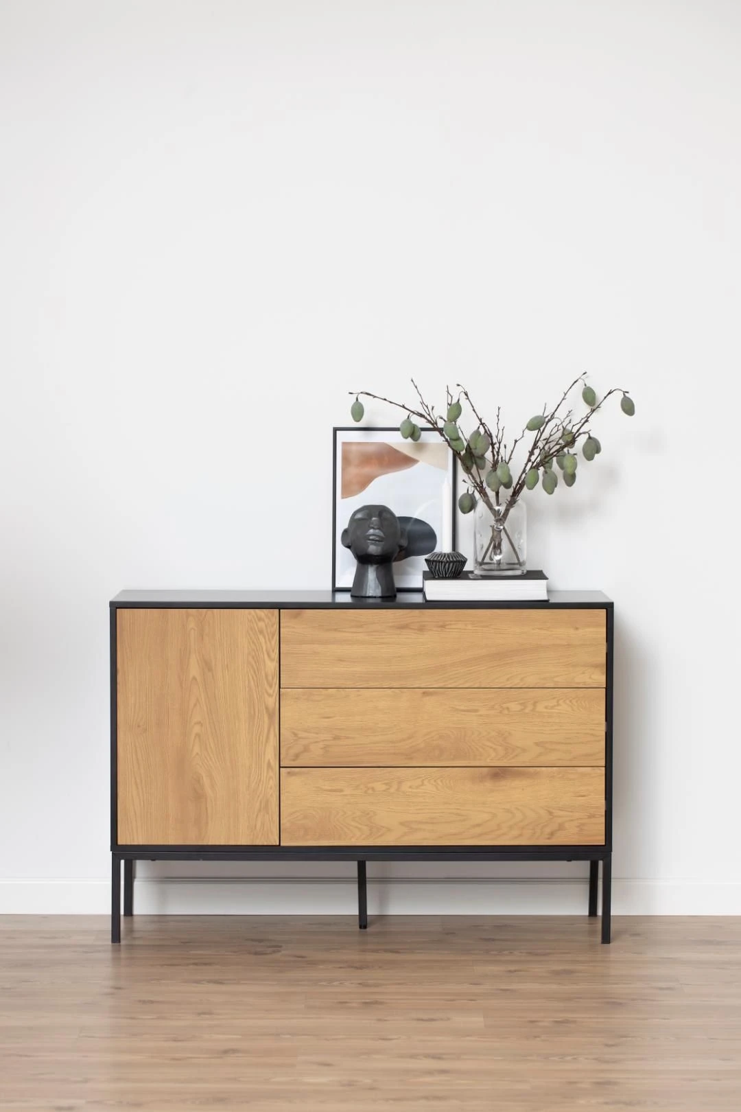 Dressoir Dover 120cm 1 Deur & 3 Lades – Zwart/wilde Eik