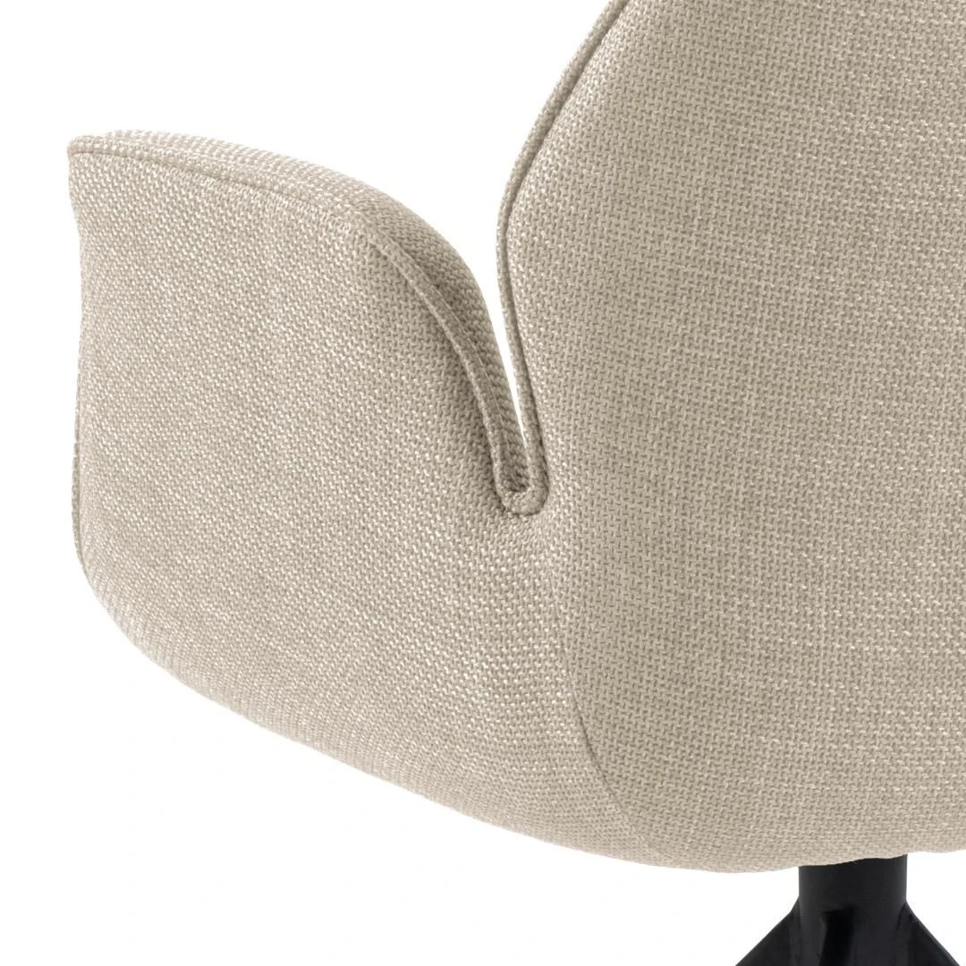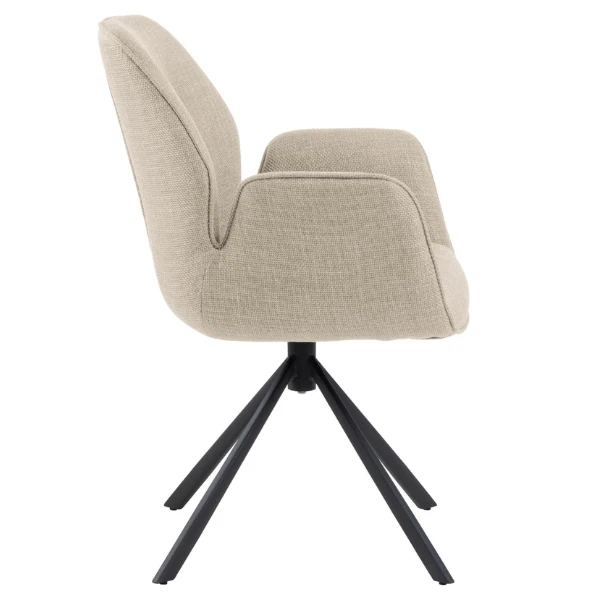 Draaibare eetkamerstoel Aubin 60x58x91cm met zwart onderstel in gepoedercoat staal en bekleding in beige.