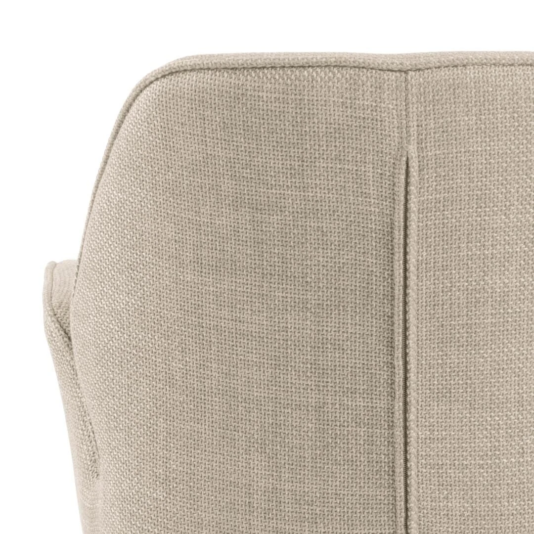 Comfort en design gaan hand in hand bij eetkamerstoel Aubin. Dankzij zijn minimalistische look en neutrale kleur past deze stoel in bijna elk interieur. De stoel bestaat uit een zwart onderstel in gepoederlakt staal en een bekleding in beige stof. De stoel is draaibaar en de armleuningen zorgen voor extra zitcomfort. Ideaal om lang te tafelen. De stoelen Aubin bestaan in verschillende uitvoeringen. Ontdek ze allemaal op onze website.