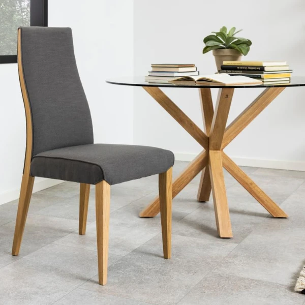 De Linate stof in grijs A09 voegt niet alleen een vleugje elegantie toe, maar zorgt ook voor duurzaamheid, waardoor hij ideaal is voor regelmatig gebruik. Het geoliede eiken onderstel versterkt de stevigheid en stabiliteit van de stoel en zorgt voor langdurige prestaties.