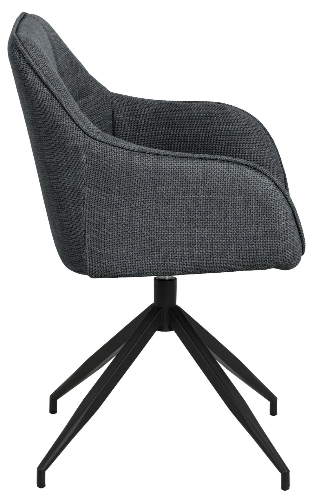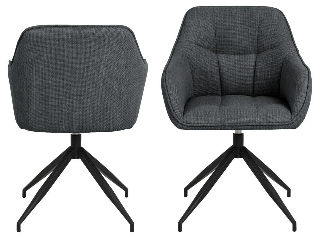 Draaibare eetkamerstoel Brenda, met een donkergrijze bekleding uit Basel-stof en poten uit zwart gepoedercoat metaal. Voorzien van decoratief stiksel.