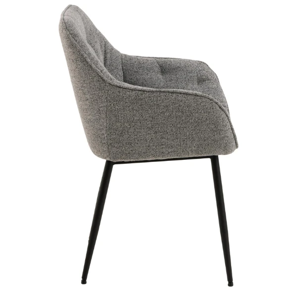 De stoelen Bridget voegen een vleugje luxe en elegantie toe aan je eetkamer. De gecapitonneerde zitting en zachte grijze stof vormen een mooi contrast met de matzwarte poten uit gepoederlakt staal. Het ergonomisch ontwerp en de armleuningen zorgen voor een optimaal zitcomfort. Ideaal om lang te tafelen. De stoelen Bridget zijn verkrijgbaar in verschillende kleuren en uitvoeringen. Ontdek al onze eetkamerstoelen op onze website.