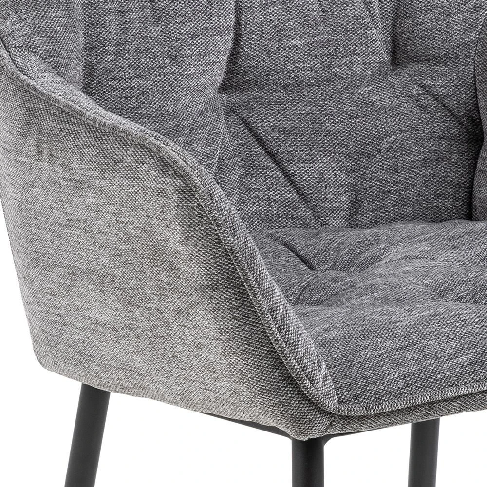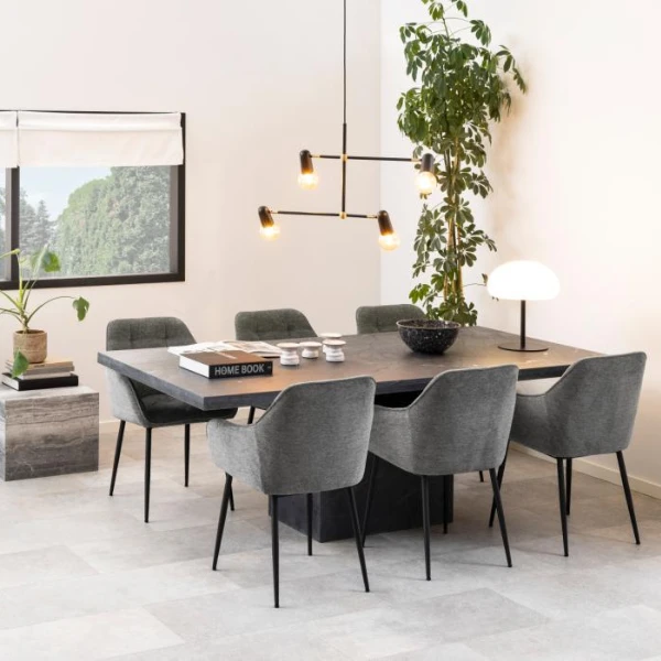 Eetkamerstoel Brooke heeft matzwarte poten. Door de grijs-zwartcombinatie past deze stoel perfect in een industrieel interieur.