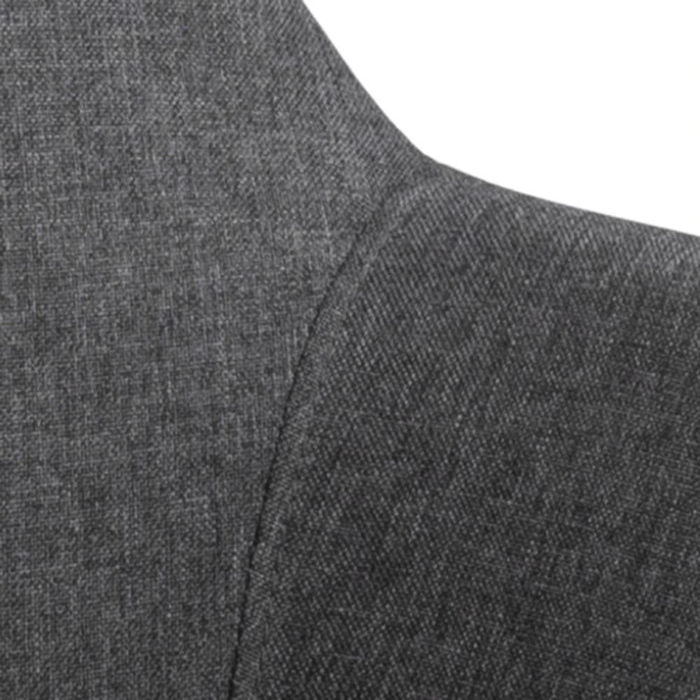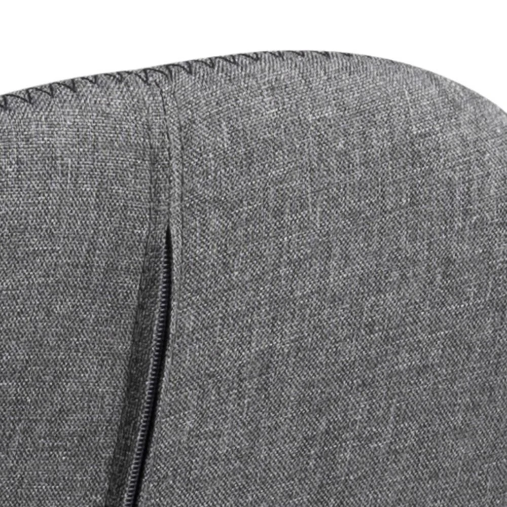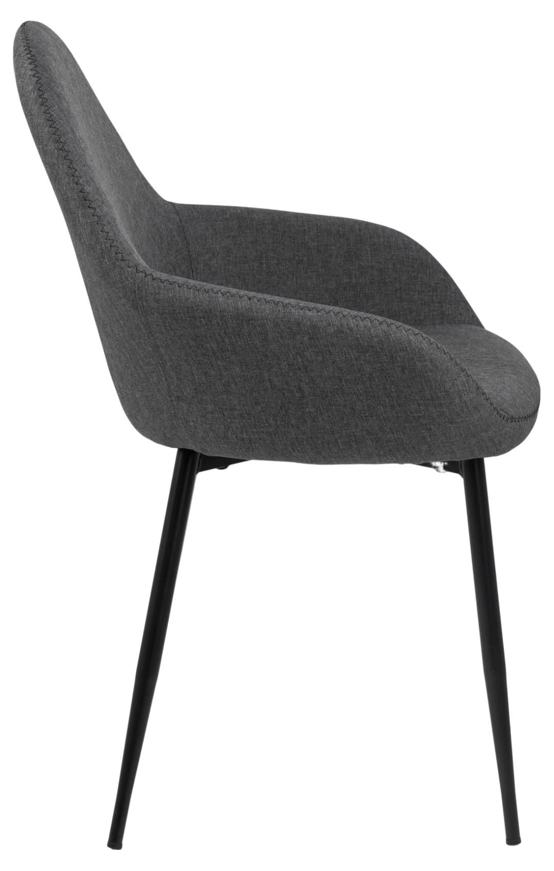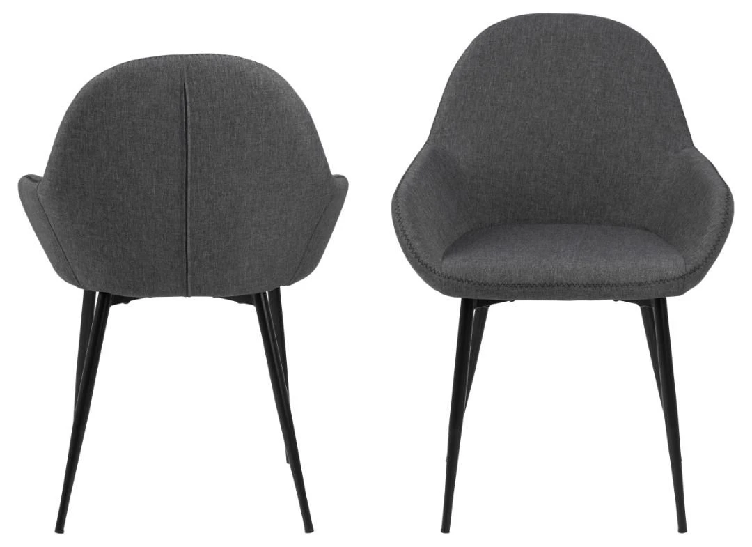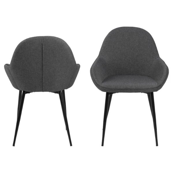 Een aangename zit wordt geboden door de moderne eetkamerstoel met verzonken armleuningen van de Caylinn-collectie. Deze eetkamerstoel is bekleed met een grijze stof en ondersteund door een onderstel uit metaal met zwarte poedercoating.