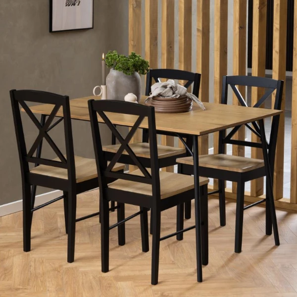 De belangrijkste kenmerken van de Elvira eetkamerstoel zijn de stevige constructie, die zorgt voor een lange levensduur, zelfs bij dagelijks gebruik. De afwerkingen mat wit gepigmenteerd en mat zwart rubberhout geven de stoel een moderne en verfijnde uitstraling, waardoor hij moeiteloos de esthetiek van elke eetkamer verbetert.
