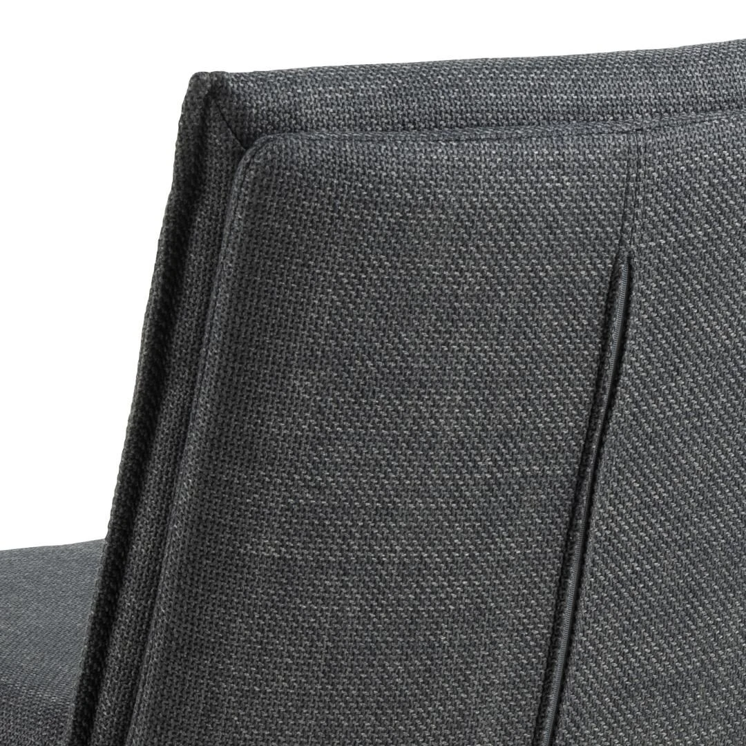 De belangrijkste kenmerken van de Flynn eetkamerstoel zijn de luxueuze donkergrijze bekleding van Basel stof, die een vleugje verfijning toevoegt aan elke eetkamer. Het ritsdetail op de rugleuning van de stoel voegt een uniek designelement toe, waardoor hij zich onderscheidt van traditionele eetkamerstoelen. De draaifunctie draait de stoel moeiteloos, zodat je gemakkelijk gesprekken kunt voeren.