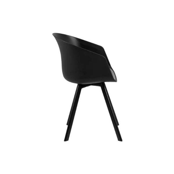 De Moon eetkamerstoel is voorzien van armleuningen uit Spy stof, mat zwart ruw polypropyleen, zwart gepoedercoat stalen onderstel.
