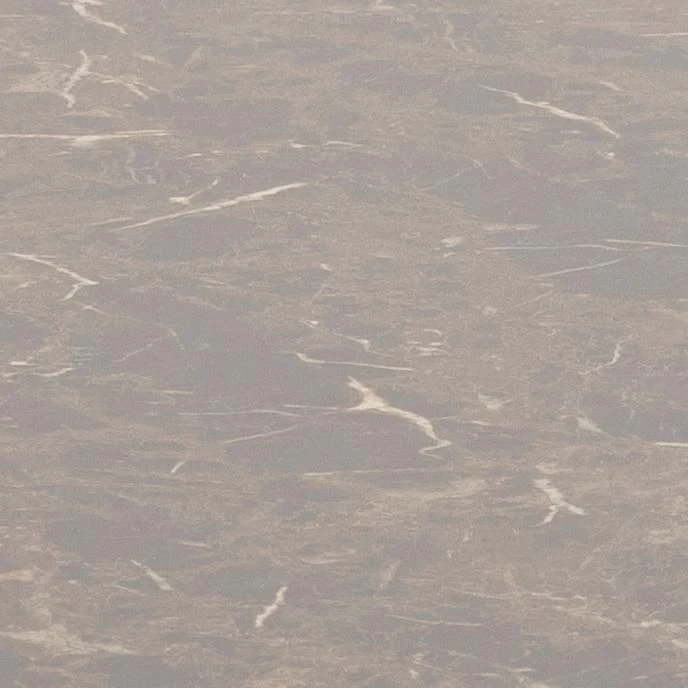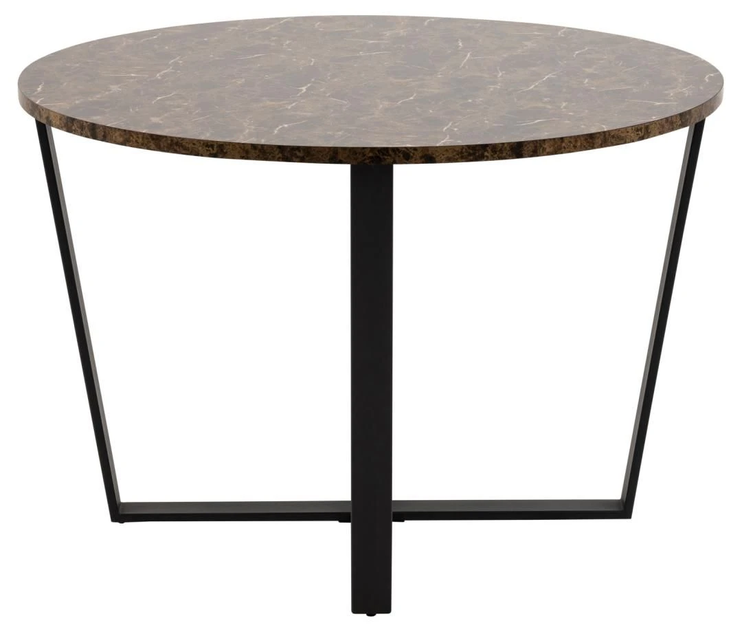 Ronde eettafel Amanda met tafelblad in bruine marmerlook en matzwarte metalen poten. Geschikt voor 3 tot 4 personen.