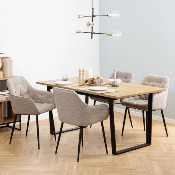 Pak een stoel en schuif gezellig aan! Eettafel Amble steelt met haar prachtige tafelblad in wilde-eikdecor de harten van iedereen. Deze tafel trekt niet enkel de aandacht door haar mooie tafelblad, maar ook door haar stoere sledepoten. Deze stevige poten zijn gemaakt uit zwart gepoedercoat metaal en zorgen ervoor dat de tafel tot wel 100 kg kan dragen.