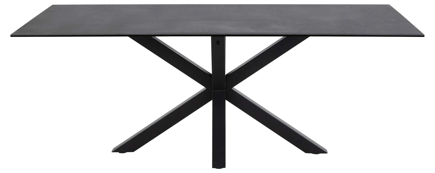 Eettafel Hennie, 200×100 cm, met zwart tafelblad uit keramiek en matzwarte metalen kruispoot.
