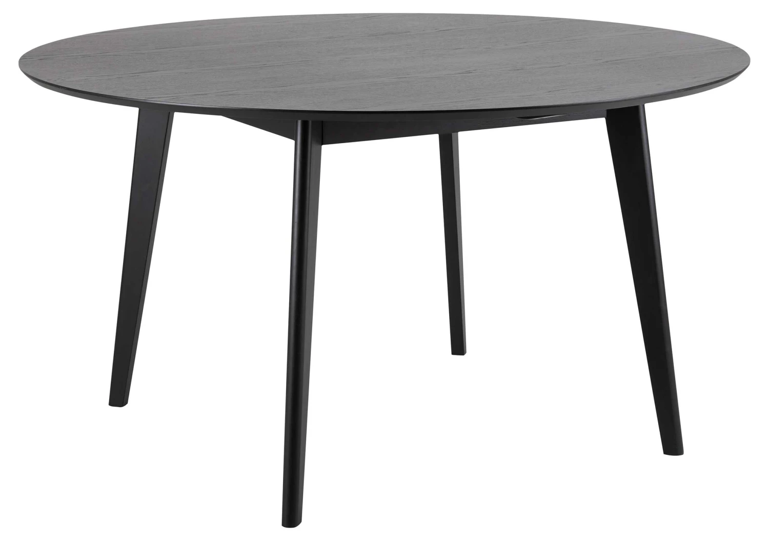 Deze ronde eettafel installeer je waar je maar wilt: in de keuken, in je appartement of in je eetkamer. De tafel heeft een diameter van 140 cm en is geschikt voor 5 tot 6 personen. De poten van eettafel Rover zijn gemaakt van rubberhout, het tafelblad is afgewerkt met een laagje eikfineer. De volledige tafel kreeg een zwarte afwerking.