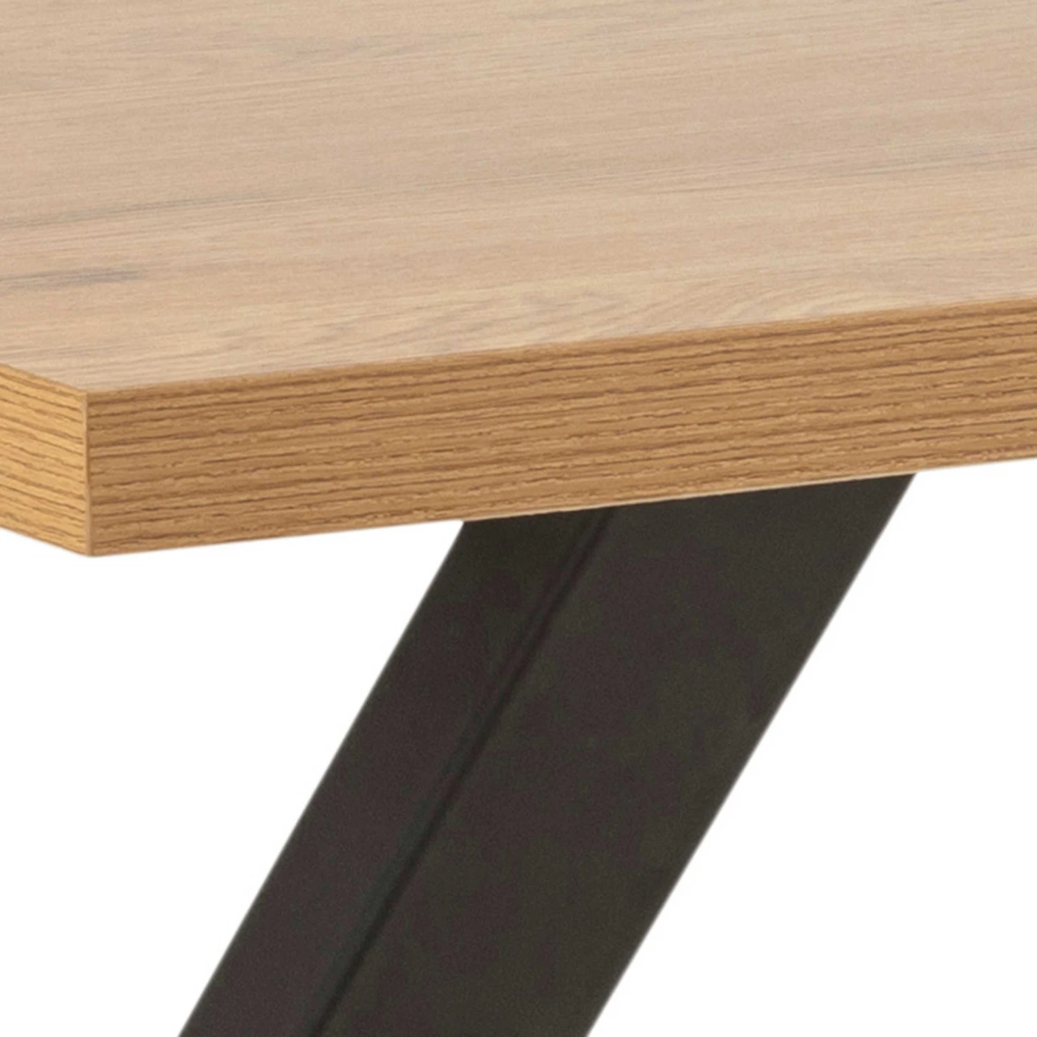 Eettafel Wallace met decor van wilde eik en matzwarte kruispoten. Geschikt voor 4 tot 6 personen.