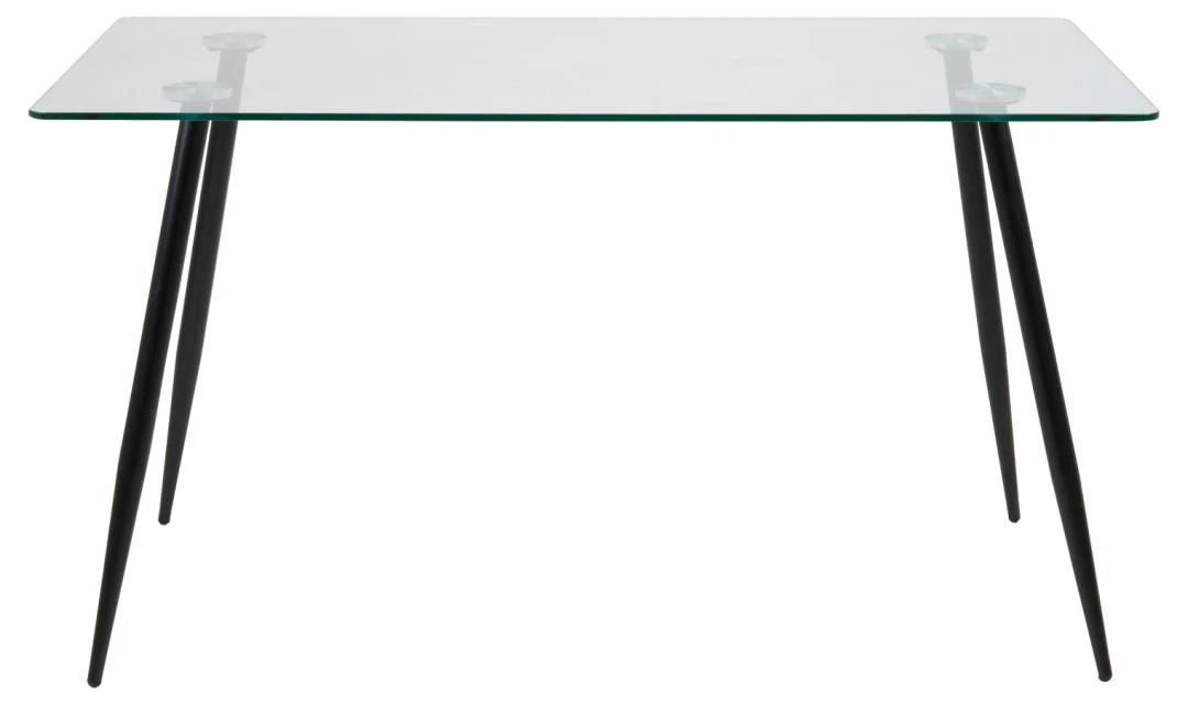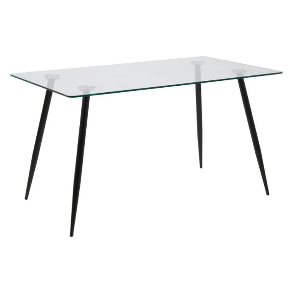 Eettafel Wilhem 140x80cm, met tafelblad uit getemperd glas en poten uit zwart gepoedercoat metaal.