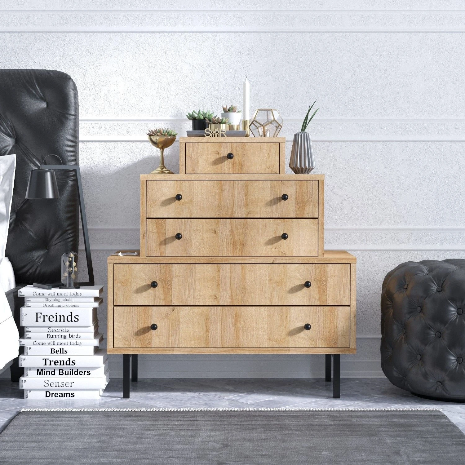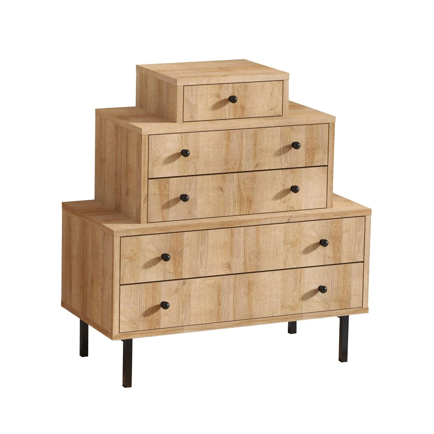 Elegance Dresser is gemaakt van 18 mm gemelamineerd spaanplaat met metalen poten. Het is voorzien van talloze legplanken en kan aan de muur worden bevestigd. Kleur: Eiken Zwart