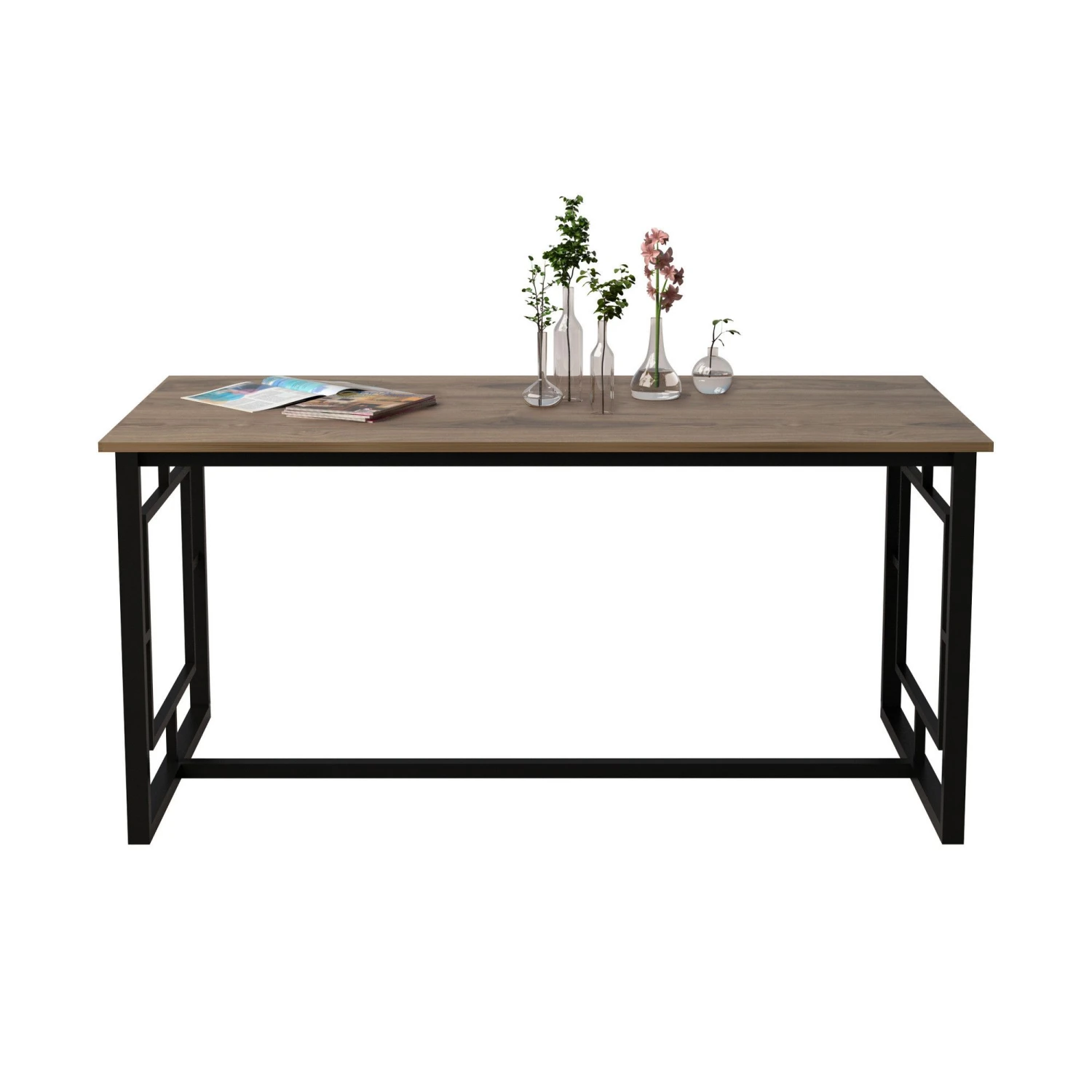 Ervaar elegantie en functionaliteit met deze multifunctionele eettafel. Hij is gemaakt van 100% gemelamineerd spaanplaat en een metalen frame, heeft een uniek ontwerp en meet 160cm x 76cm x 90cm. De walnoot zwarte kleur voegt een vleugje verfijning toe aan elke kamer.